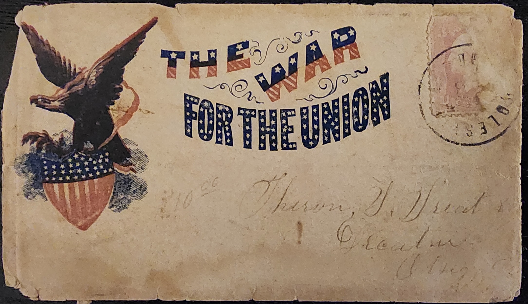 The patriotic letterhead of Josiah’s letter with his annotation, “Mother, this is the flag that we are fighting for.”