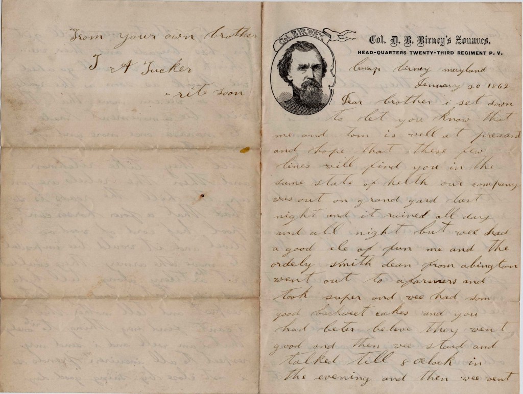 Col. D. B. Birney’s Zouaves Headquarters 23rd Regiment P. V. Camp Birney, Maryland January 20, 1862