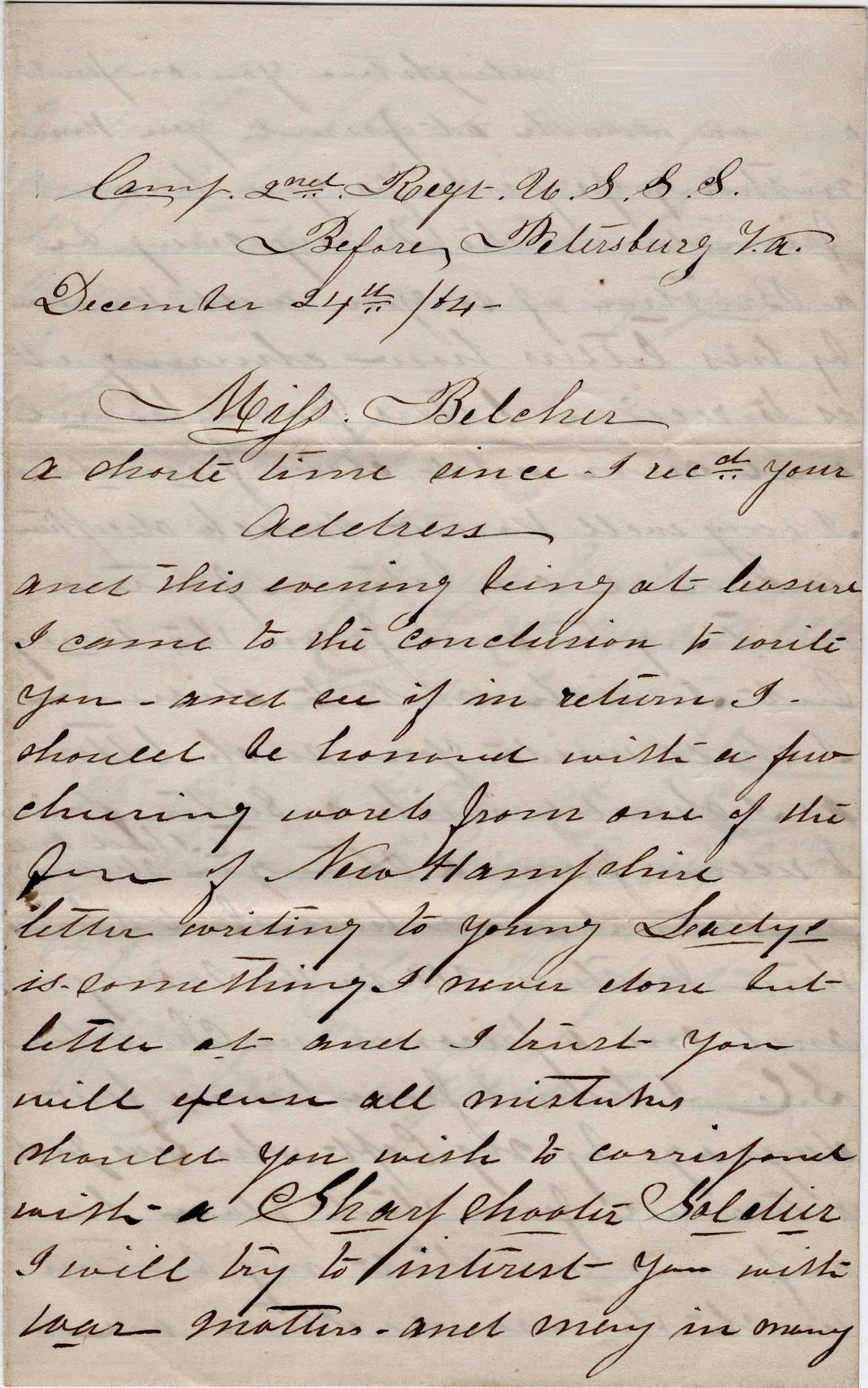Camp 2nd Regt. U. S. S. S. Before Petersburg, Va. December 24th 1864