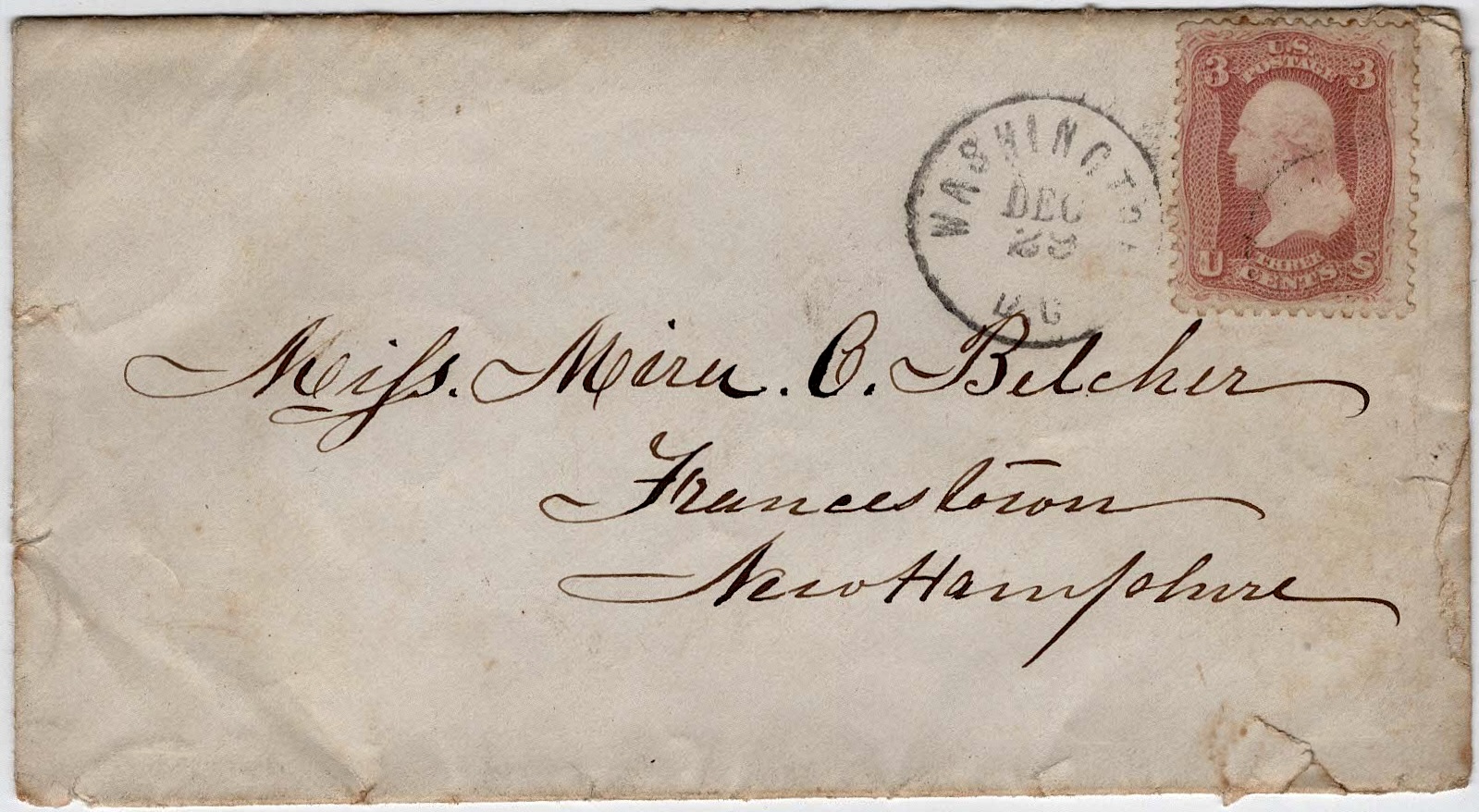 Eastman wrote the letter to 17 year-old Almira (“Mira”) Belcher (1847-1924) of Francestown, Hillsboro county, New Hampshire. She was the younger sister of Pvt. Henry A. Belcher who served in Co. B, 13th New Hampshire Volunteers who died of typhoid fever in November 1863. [See 1862-64: Henry A. Belcher to his Family] The only other name dropped in the letter was that of his commanding officer, Capt. Asel B. Griggs, but I do not see anything in his biographical sketch that would suggest a reason for him to be in Charleston S. C. as was stated in the letter.