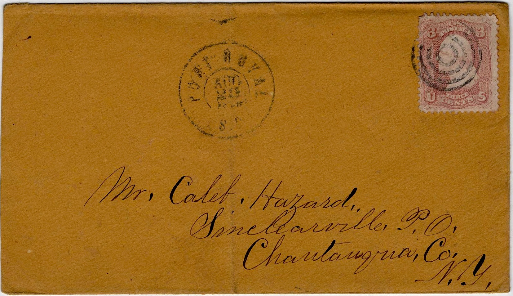 Addressed to Mr. Caleb Hazard, Sinclairsville P. O., Chautauqua county, New York