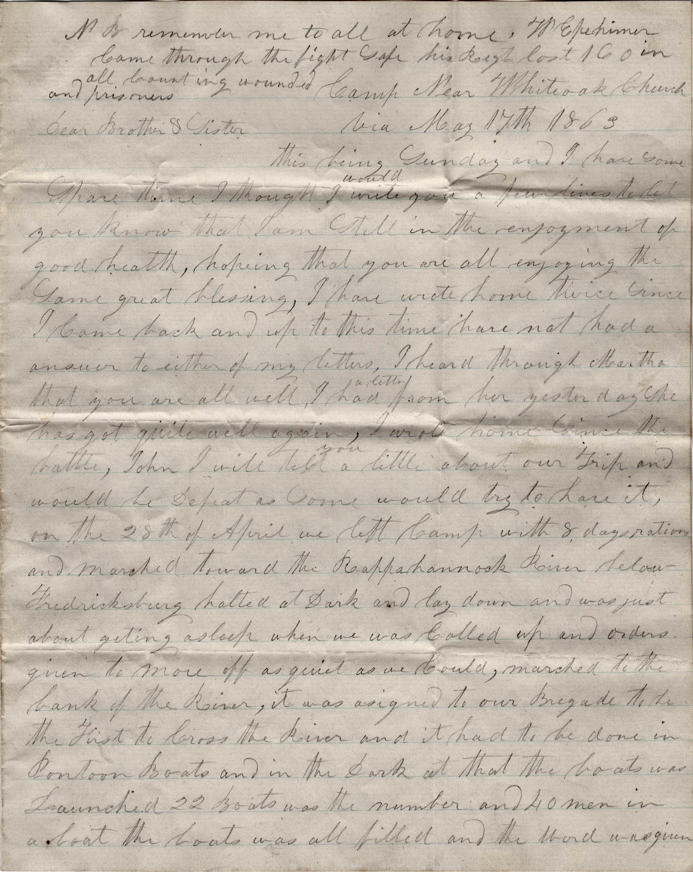 Camp near White Oak Church, Va. May 17th 1863