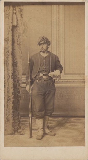Private William H. Hanifer wears the uniform of the 23rd Pennsylvania Regiment (“Birney’s Zouaves”), LOC.