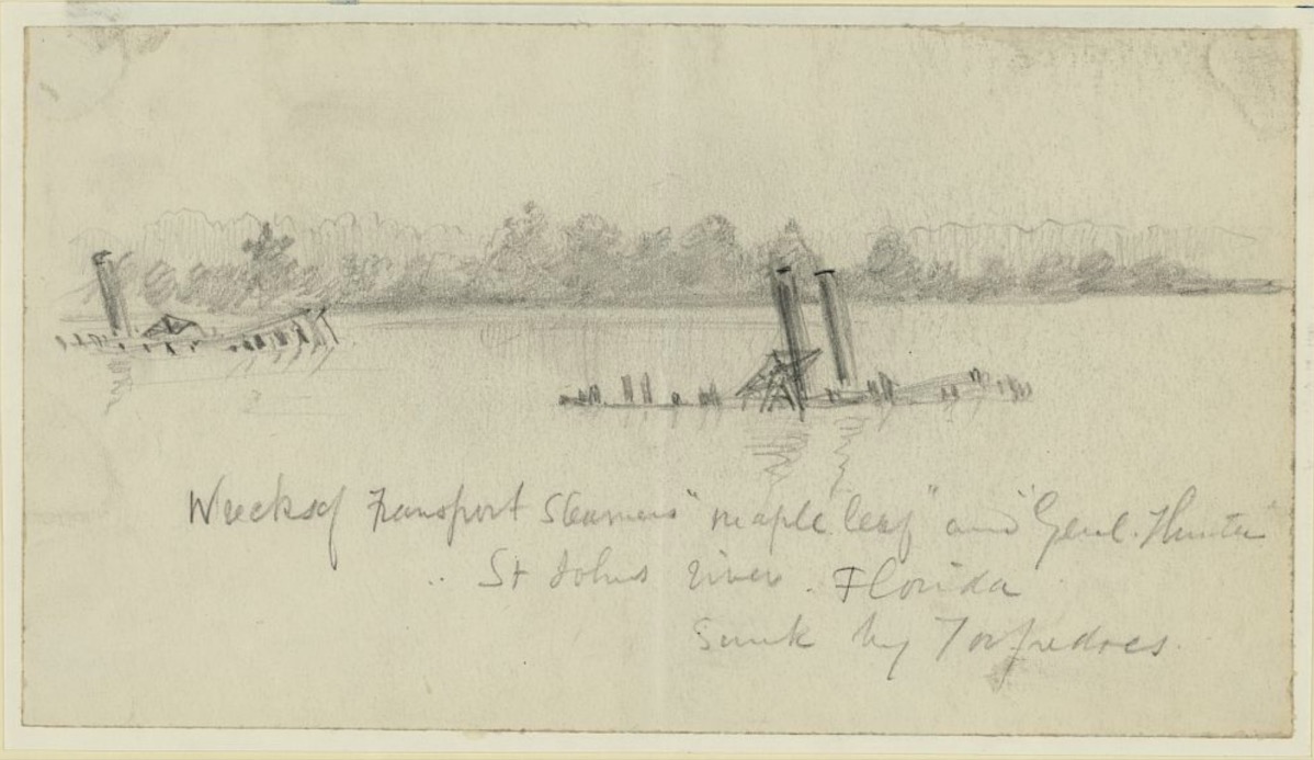 Wreck of the Transport Steamers “Maple Leaf” and “Gen’l Hunter” on St. Johns River, Florida — Sunk by torpedoes