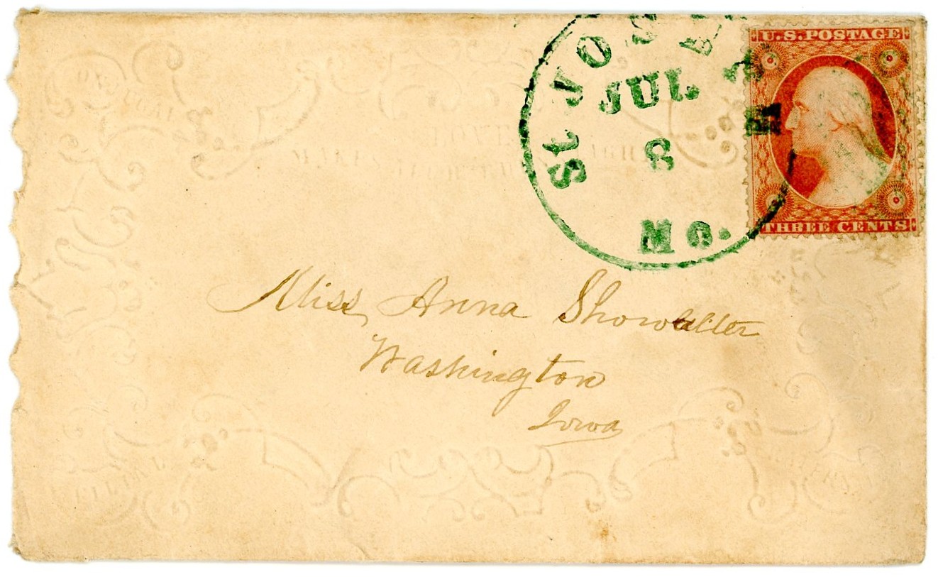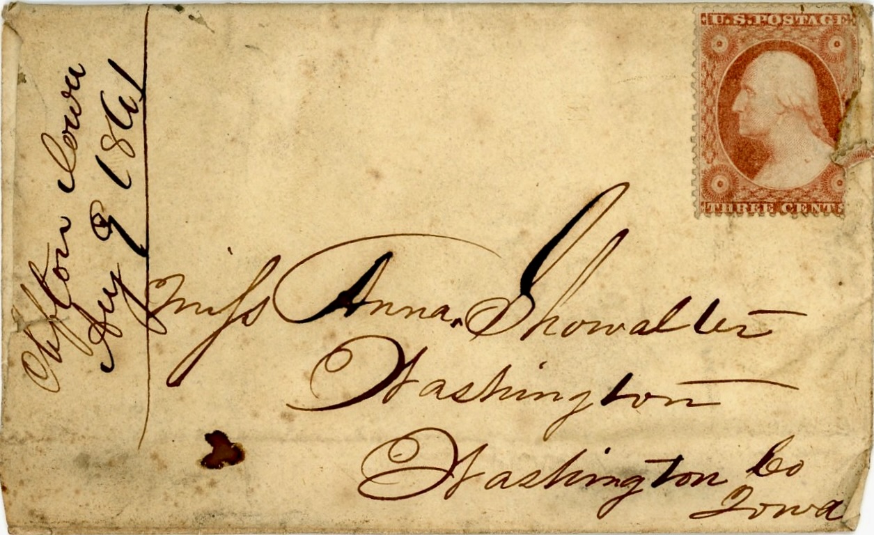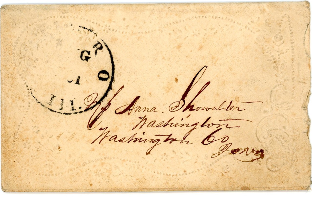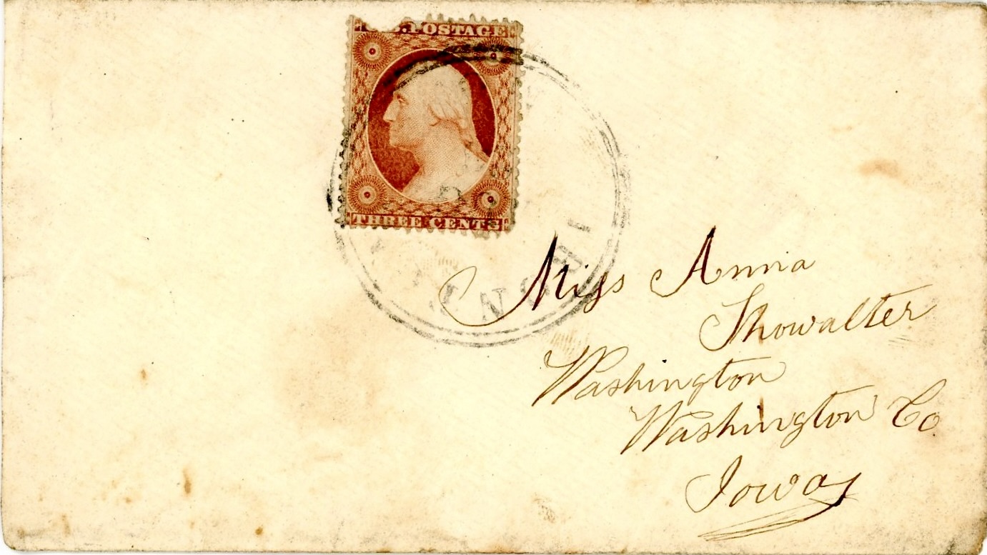 Addressed to Miss Rose A. Showalter, Washington, Iowa