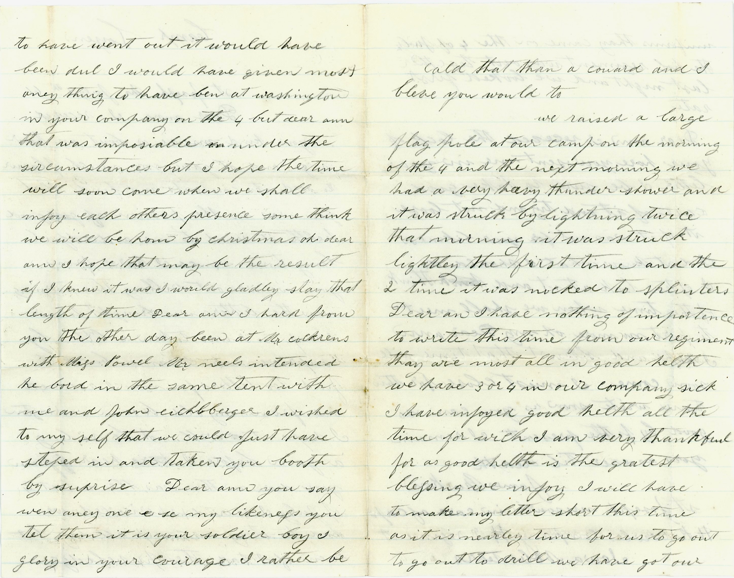 (There is some talk of our regiment reenlisting when they have been in two years. What shall I do about it? I shall do just as you say. Still, I have a mind of my own. I think the best thing I can do is to enlist. Don’t let mother [ ] you read this.)
