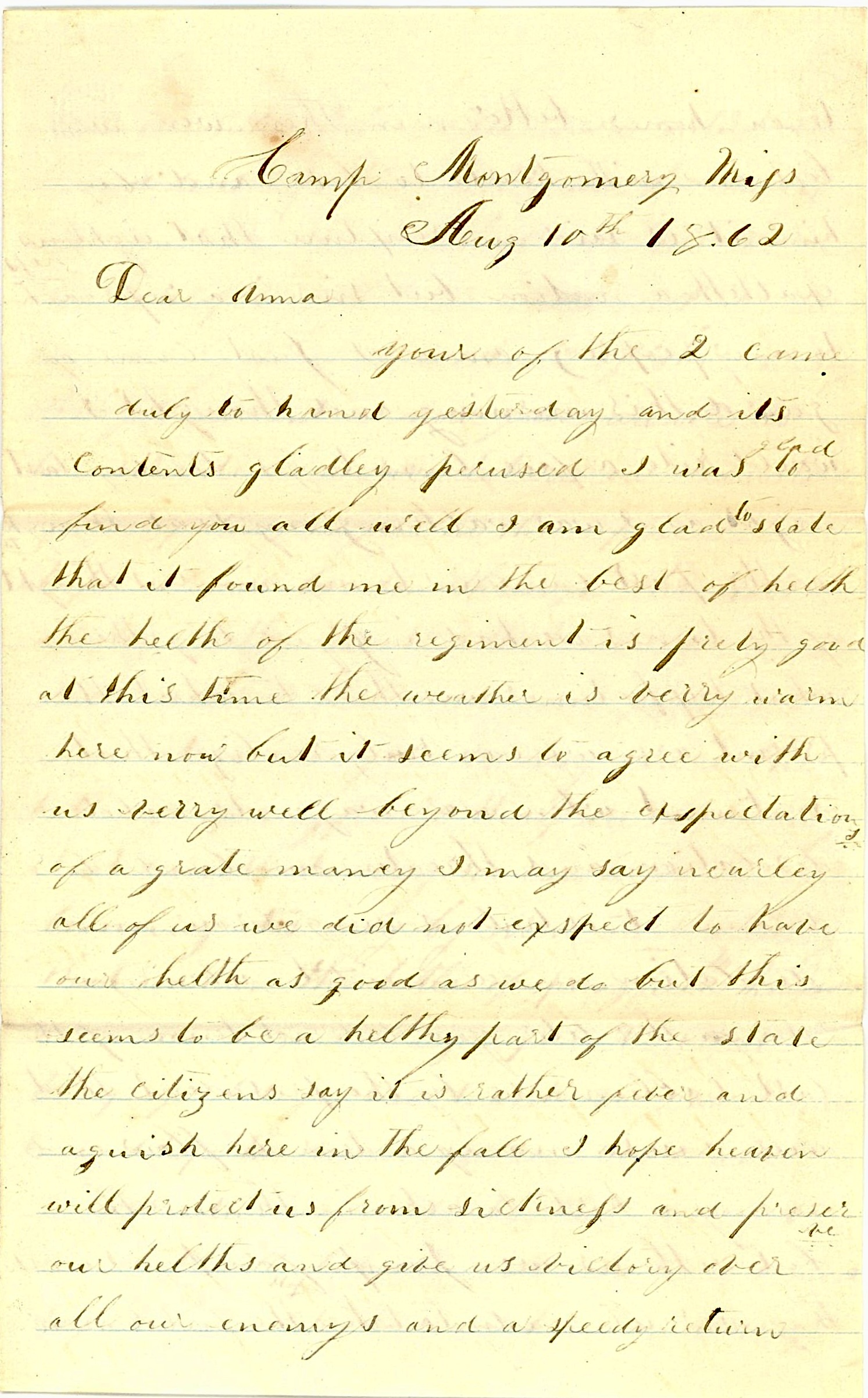 Camp Montgomery, Mississippi August 10, 1862