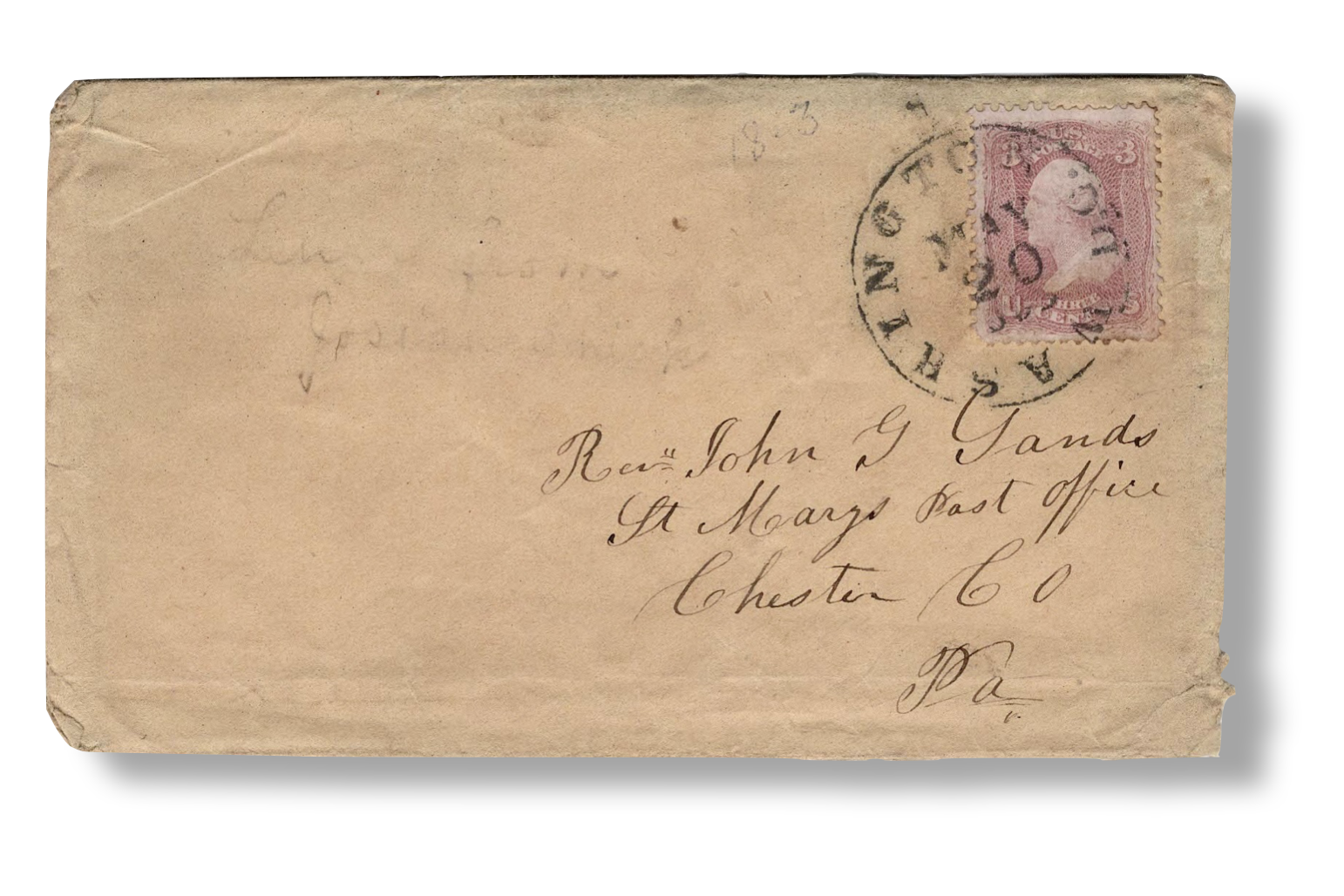 Addressed to Rev. John G. Sands, St. Marys Post Office, Chester county, Pa.