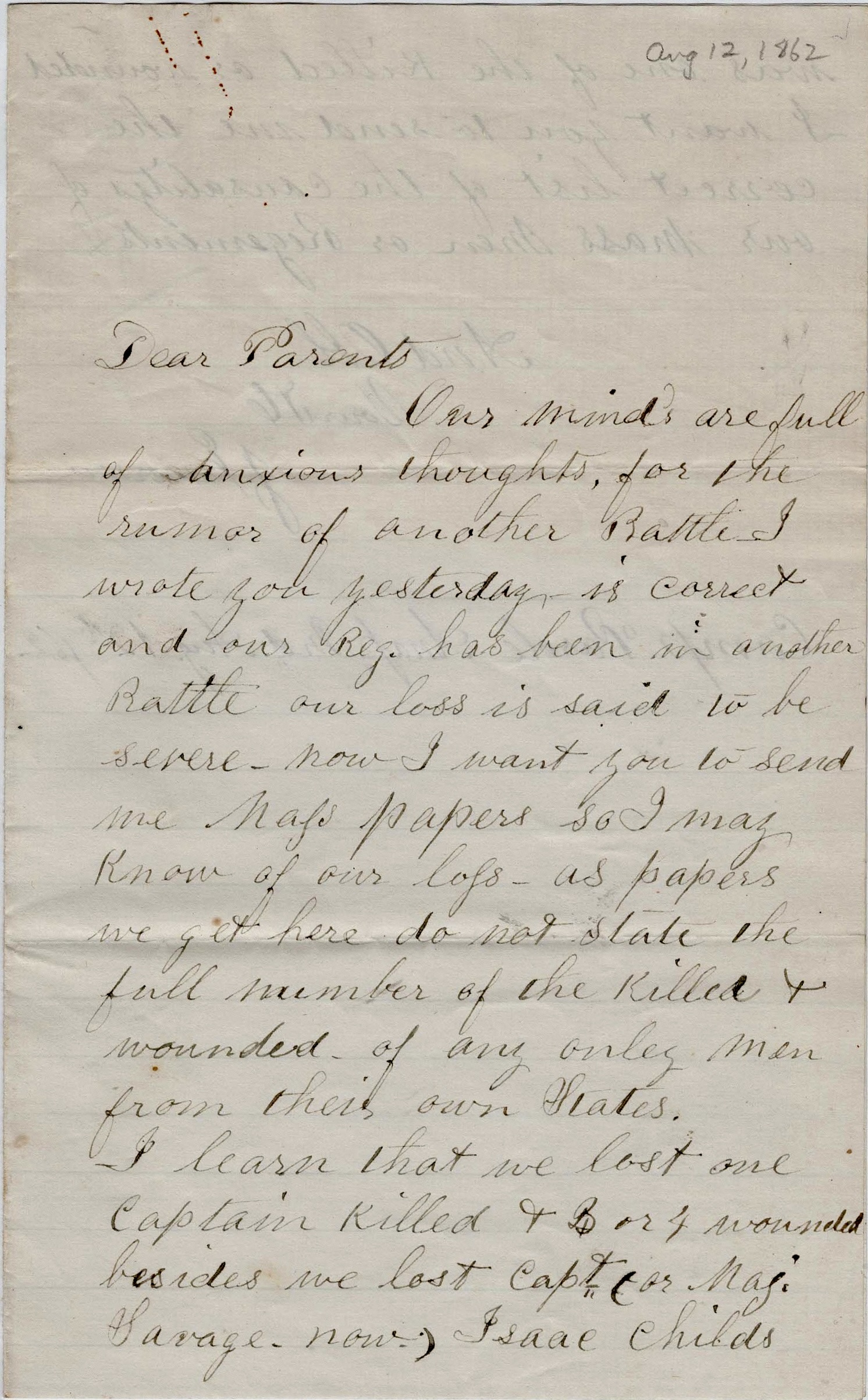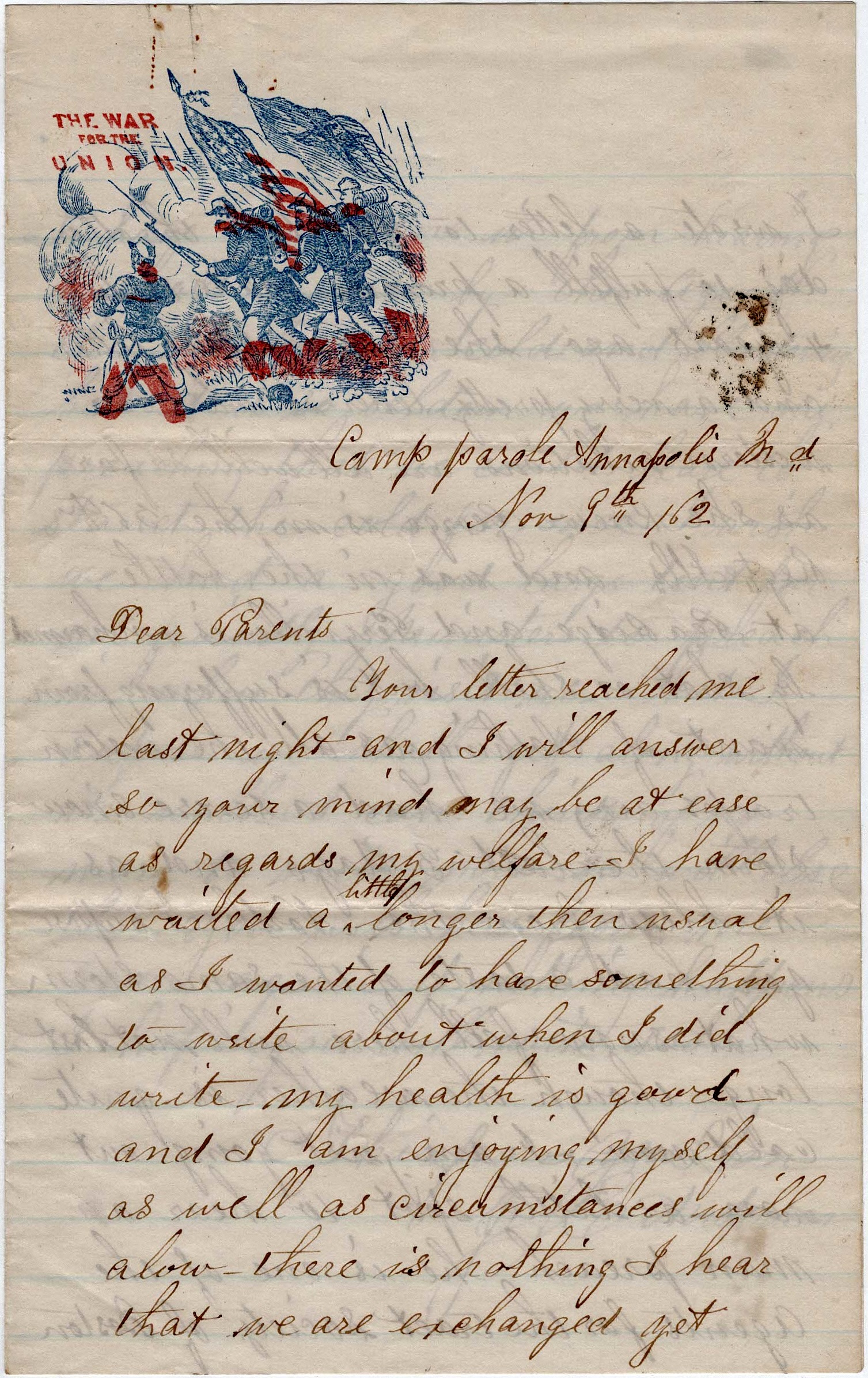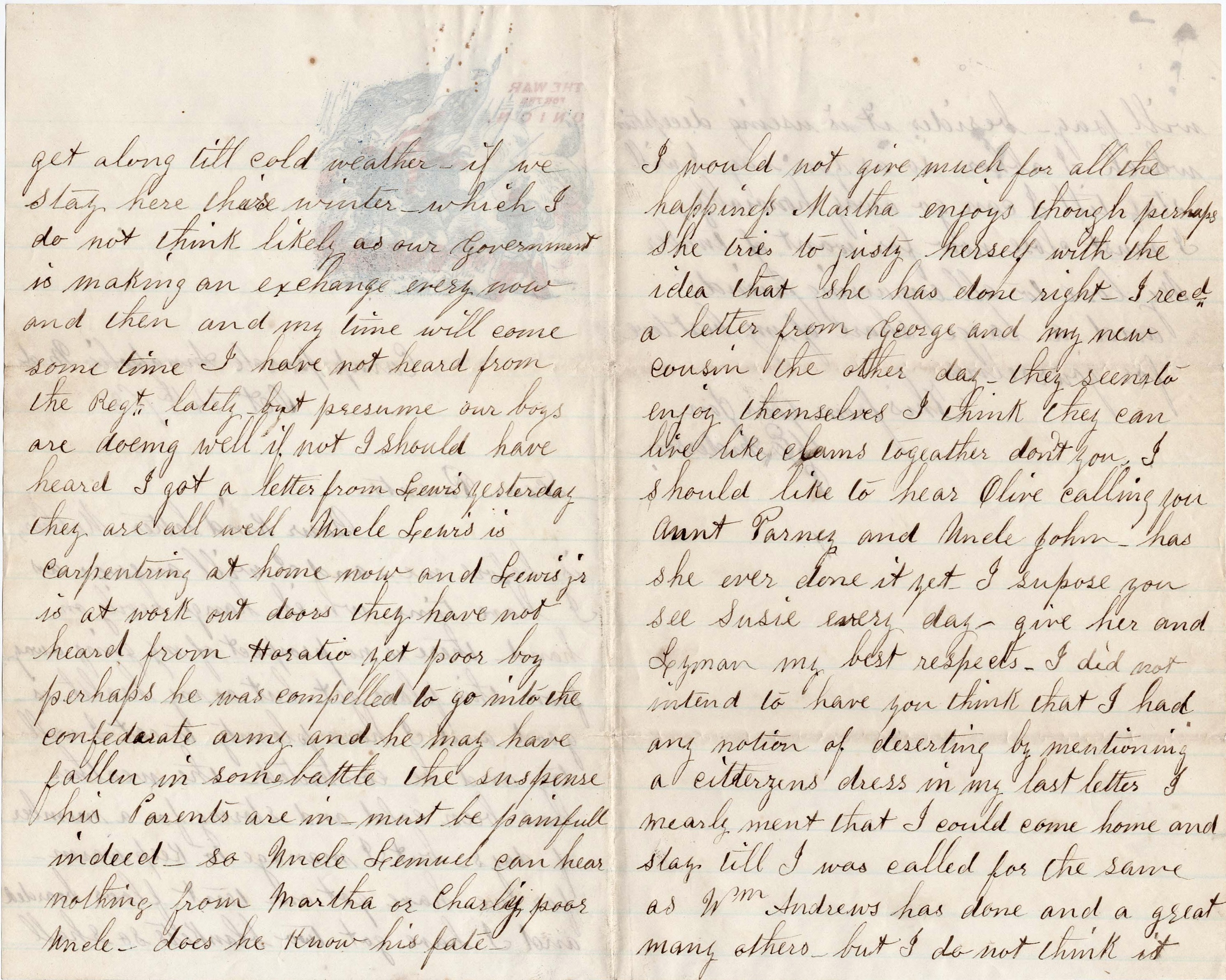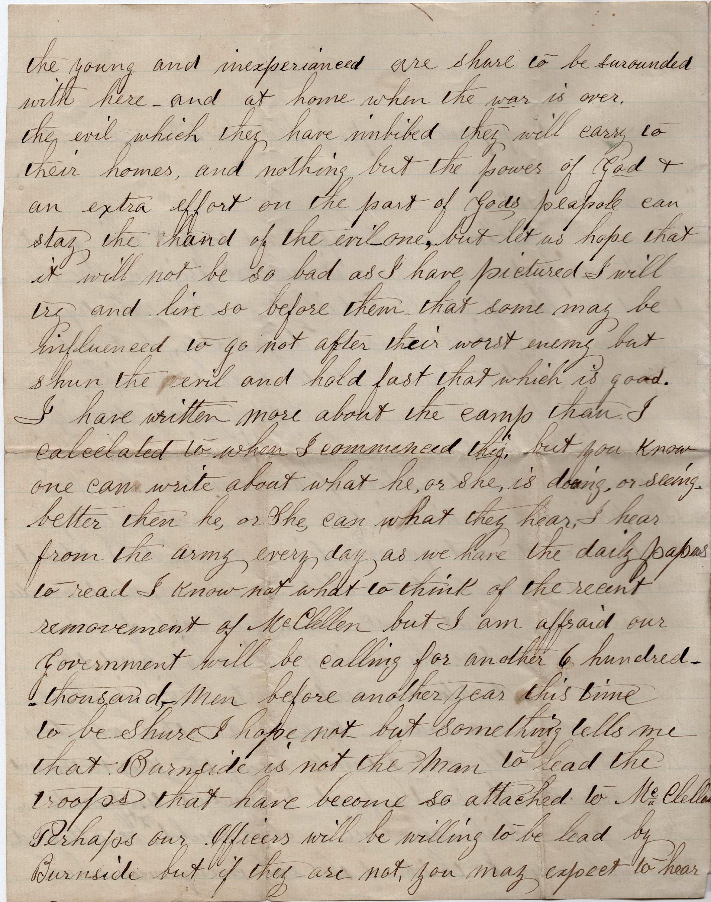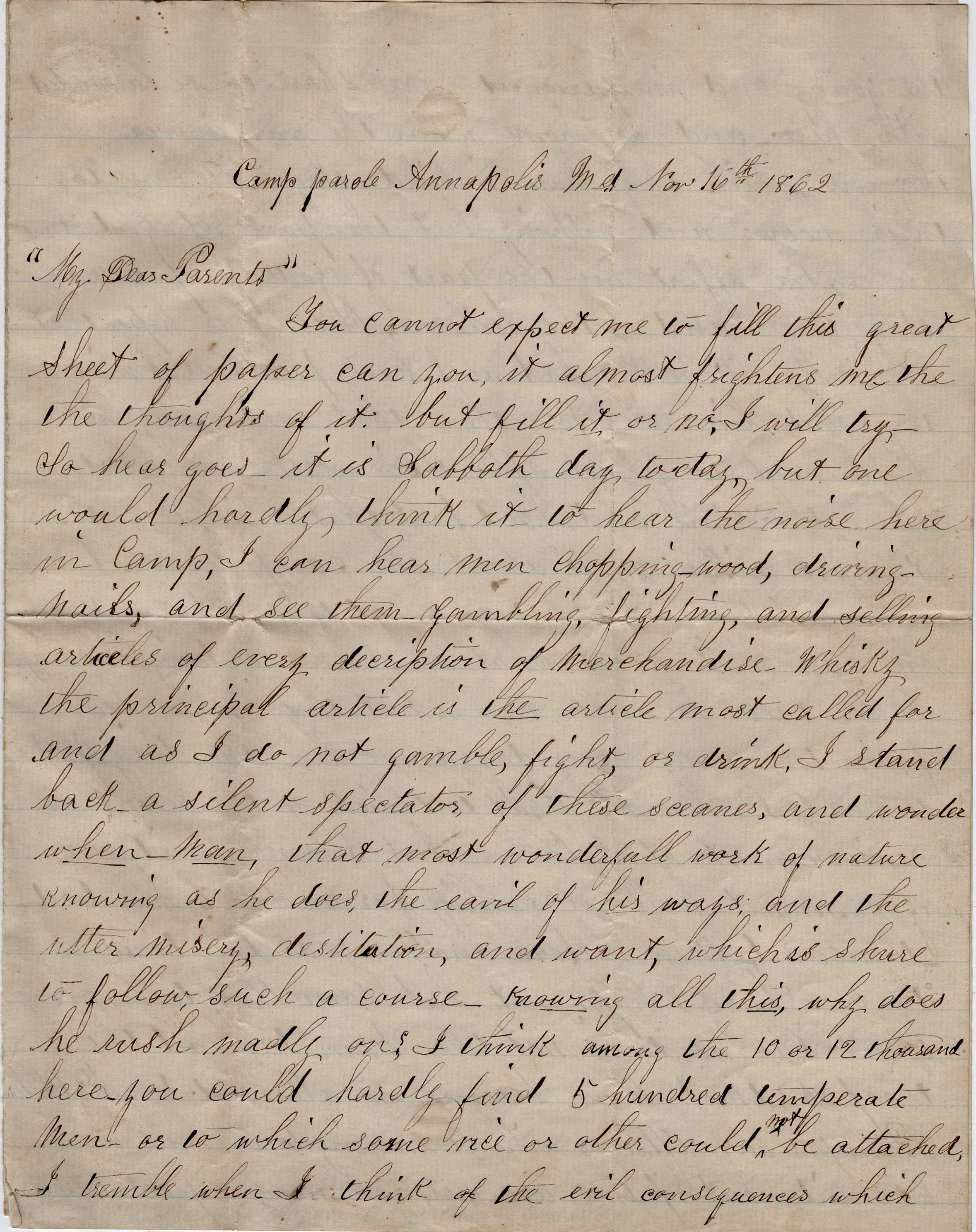 Now my dear parents, if it should be my lot to fall in battle or disease should lay hold of this earthly form, and you should see me no more here below, I will try to live in the sight of God in such a manner that we can meet again where there will be no more wars or separation. God help us all to be faithful till we arrive at home.