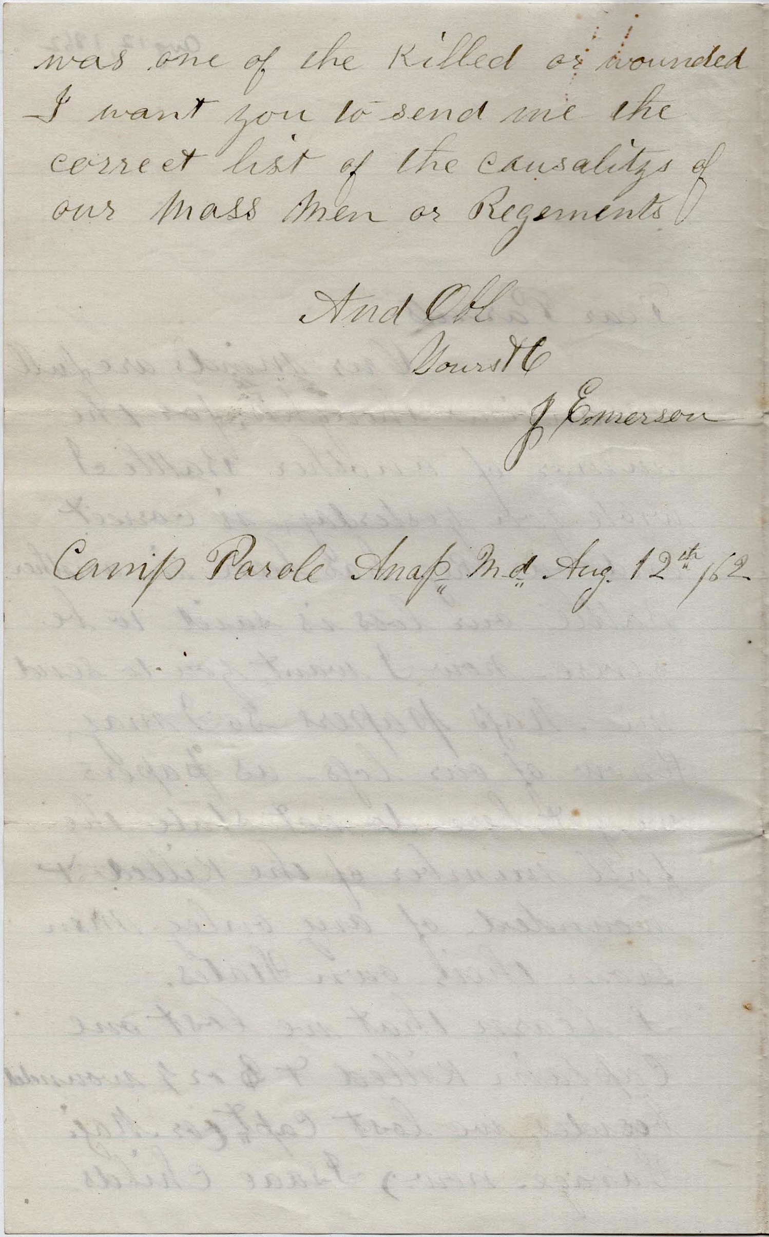 When you write me, send a blank sheet of paper every time as it is no place to keep paper here, it gets so dirty. Yours in love, — J. Emerson