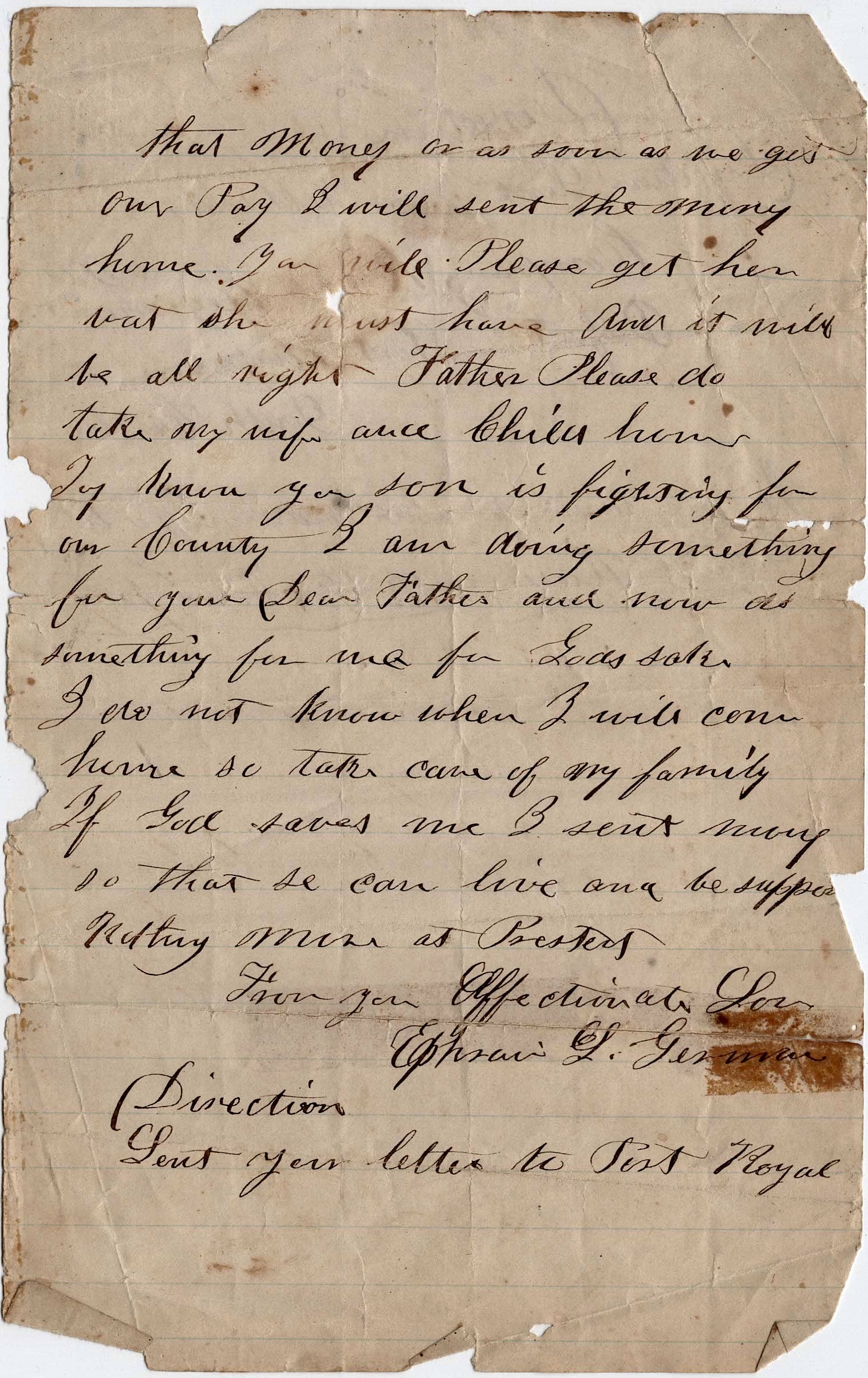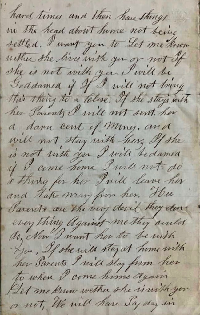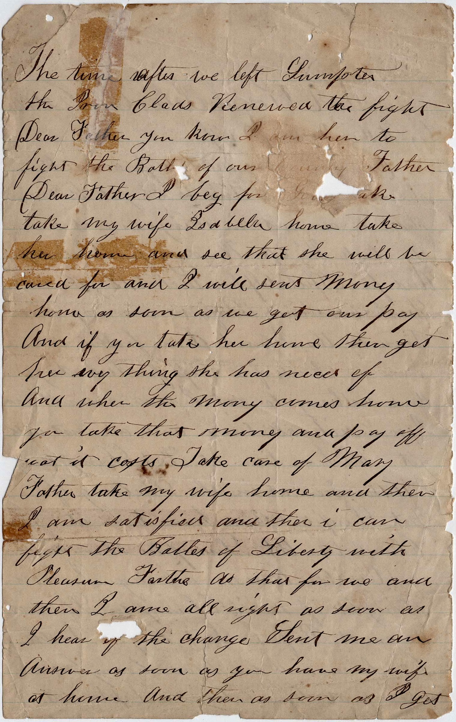 Please write to me often and tell me how the good Union men stood up to the draft, and if it was only the Copperheads that was scared, so as to be able to run their hands down into their well lined pockets and draw out the greenbacks to hire volunteers. Bah! such men I greatly fear would run away were danger near, and leave their homes, to traitors free, thereby enacting, “Refugee.”