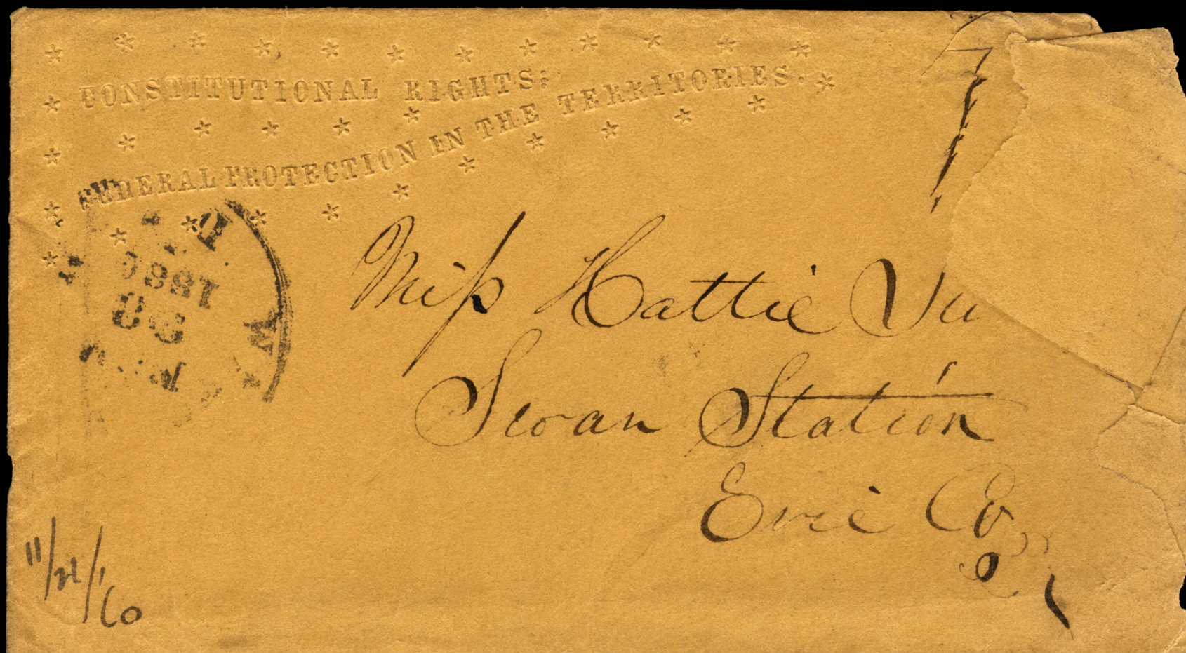 Addressed to Miss Hattie Vail, Swan Station, Erie county, Pa.