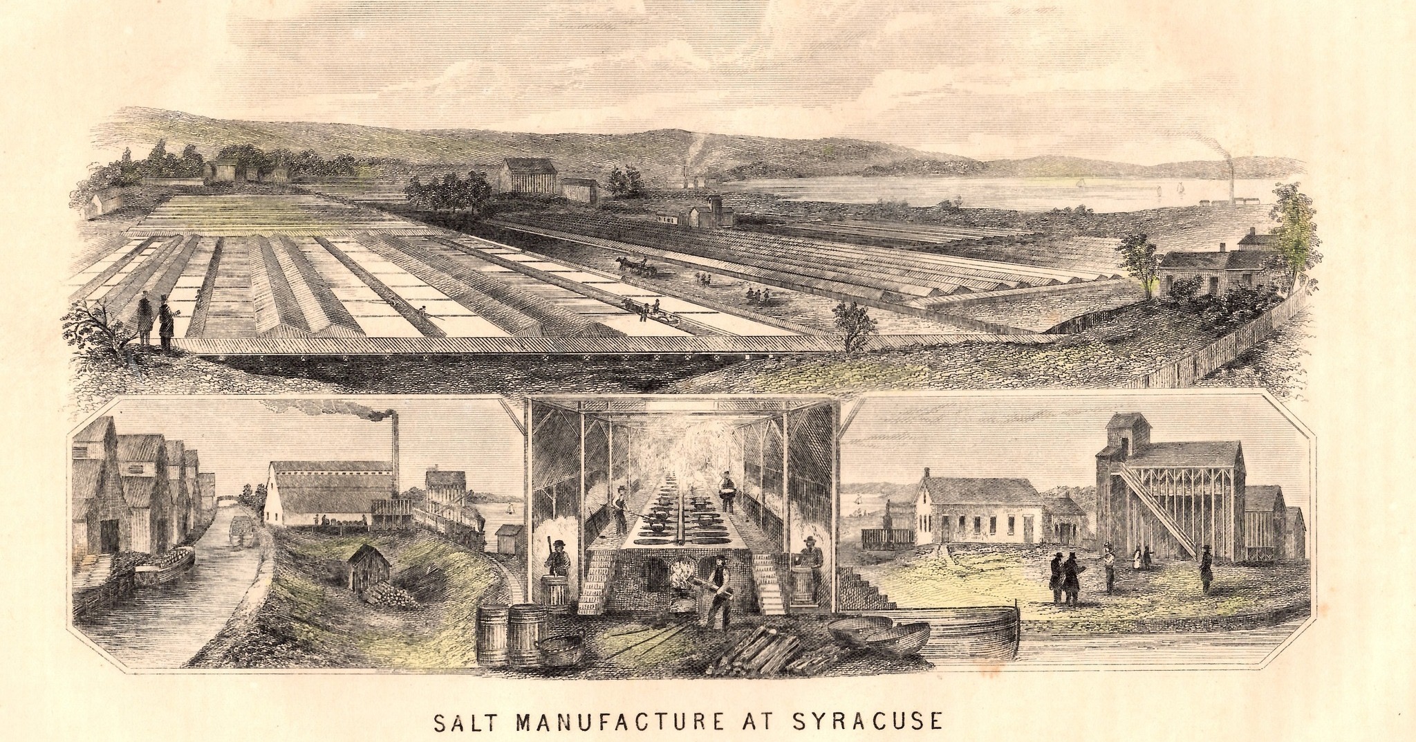 Wednesday, August 14, 1839. In the morning visited the salt springs at Salina. Five hundred bushels of salt are made in one vat in fifteen days. The greater the temperature, the finer the salt. The water is brought up to a certain height, then conveyed by pipes to the vats.