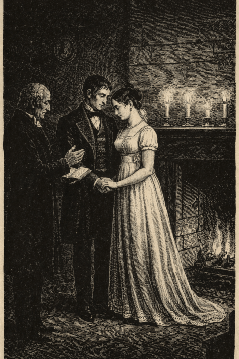 Thursday [December] 31 [1840]. Attended the nuptials of Miss H[annah] W[hite] Morford and James McCausland. 1 The Rev. Mr. [Harry] Finch performed the ceremony. One bride’s maid and one groom’s man officiated. Immediately after the lighting of candles, the intended bride appeared and lighted up the room with her presence. A company of forty persons was assembled. Plays occupied a great part of the evening. They deserve to be disused. Returned home at two o’clock leaving Mr. Morford’s at half past twelve o’clock.