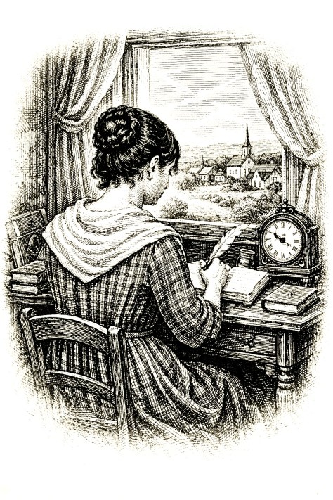 I could find no images of Lavinia; the woodcut depiction of a young woman standing on the outskirts of Middleton, New Jersey, in the 1830s is purely conjectural.