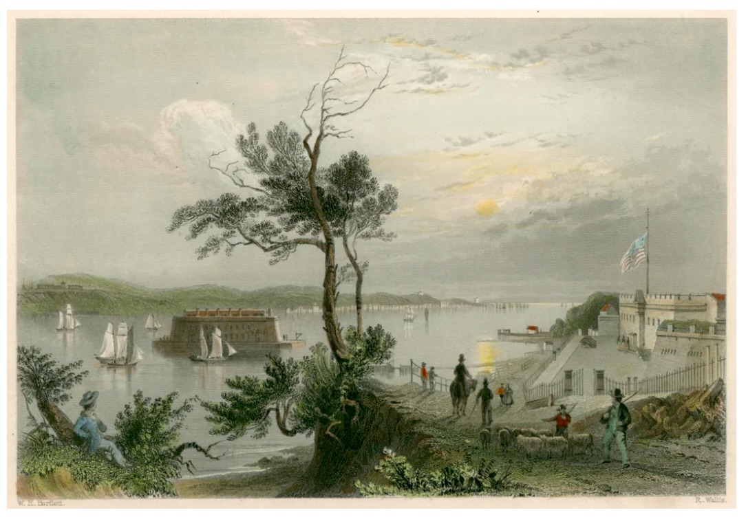Wednesday 10th. In the afternoon left home for New York [City]. Weather excessively warm. A great number of passengers on board. I had the exquisite pleasure of meeting an old friend. The scenery upon Lond and Staten Island was indeed more beautiful I thought than ever. On approaching the city the Battery met my longing gaze and arrested it. The trees are clothed in their verdant foliage and the whole prospect was unspeakably beautiful. Arrived at the city at 6 o’clock in the afternoon.