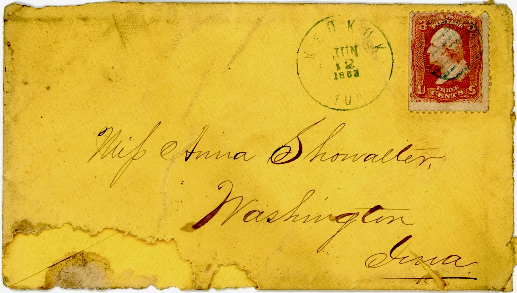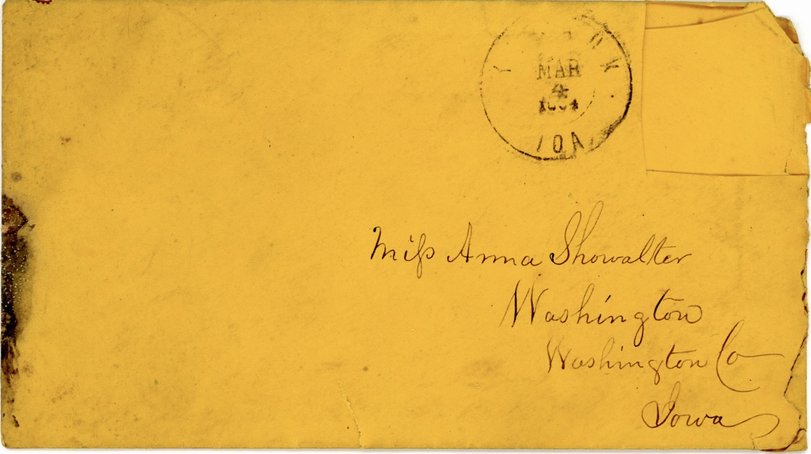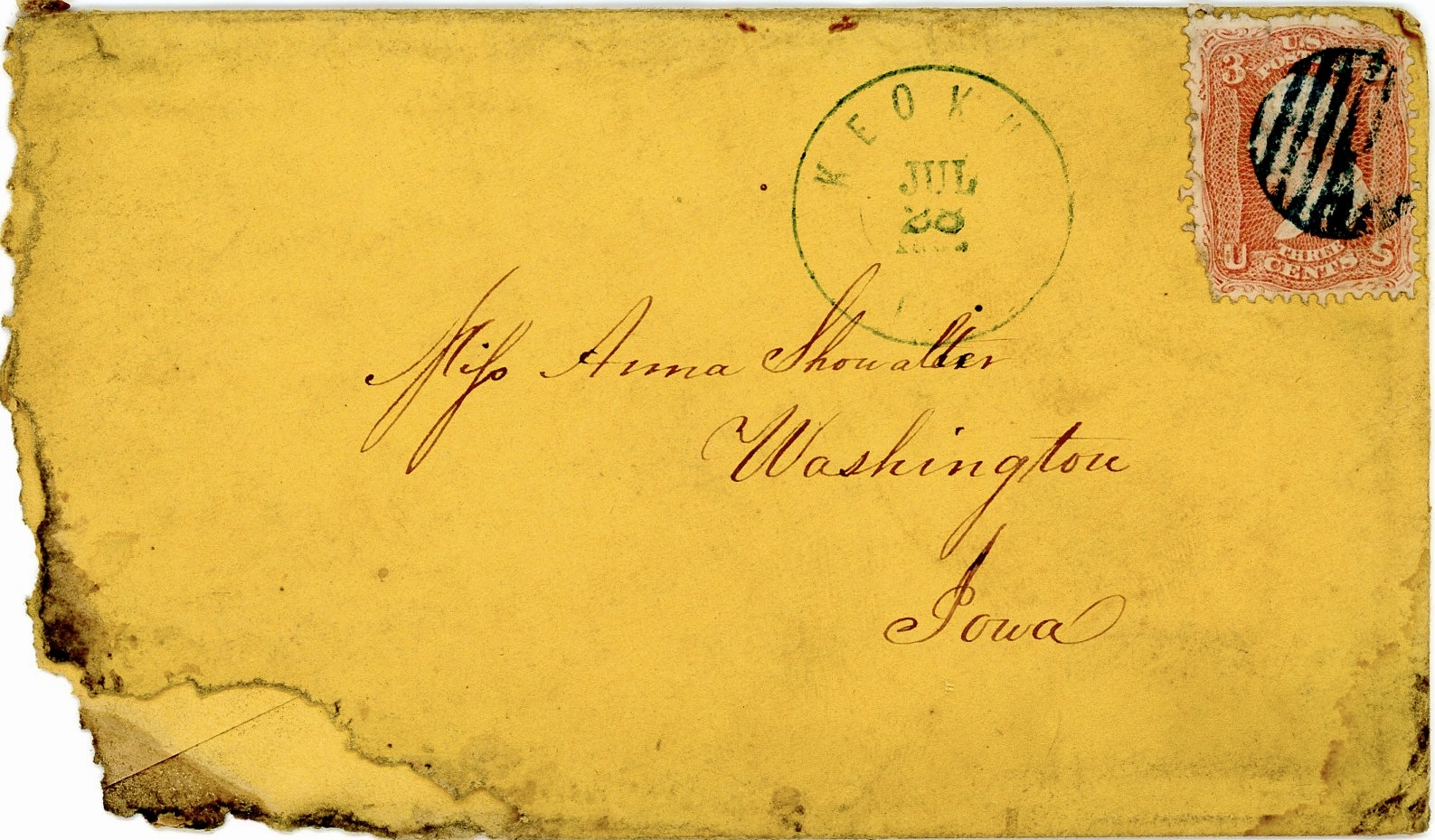 All of the letters were addressed to Roseanna Showalter (1839-1922), the daughter of Daniel and Catherine (McKaren) Showalter who moved from Wooster, Ohio, to Washington, Iowa, in 1844 when Roseanna was quite young. James and Roseanna were married in September 1864.