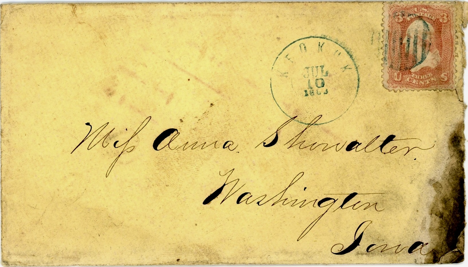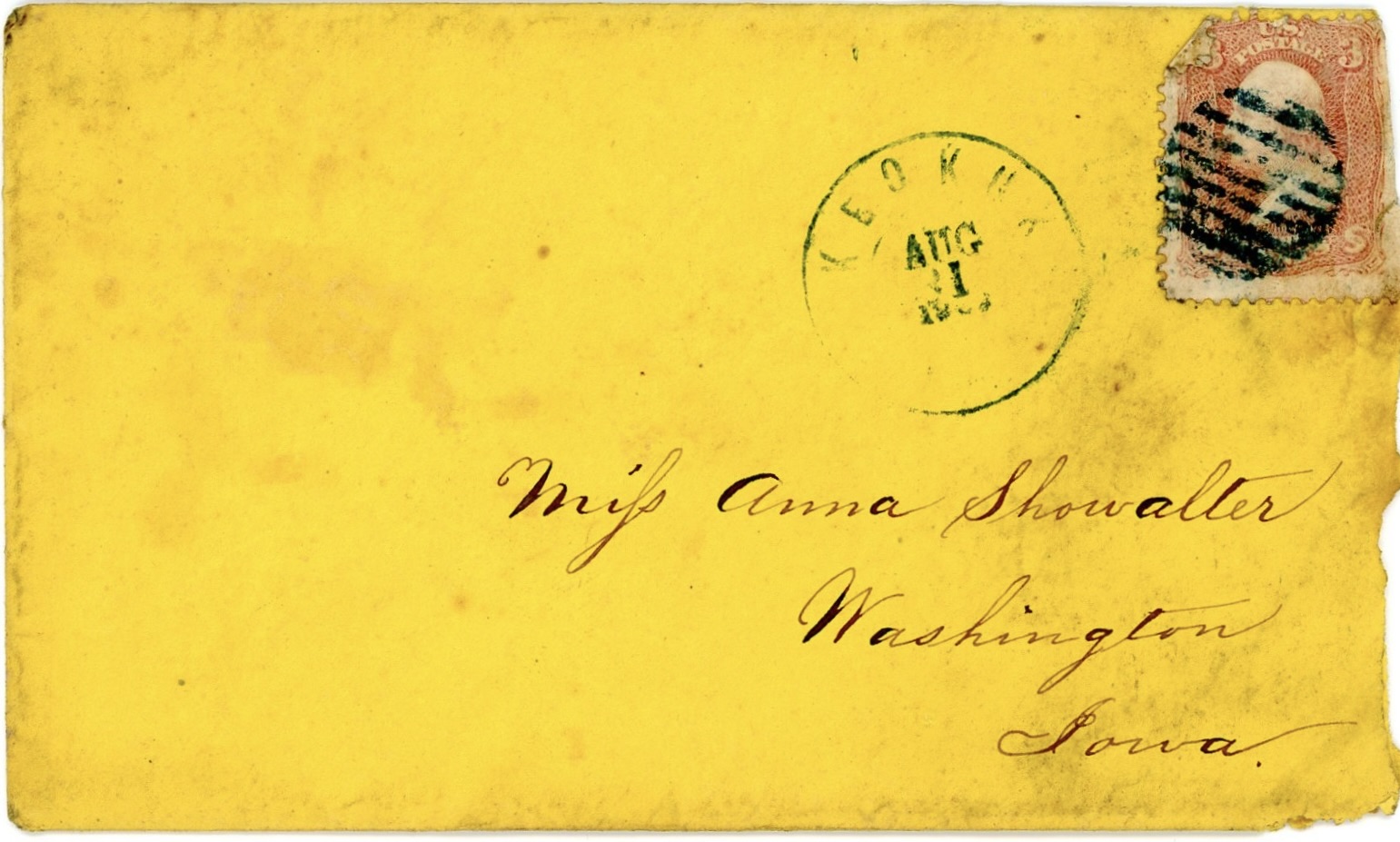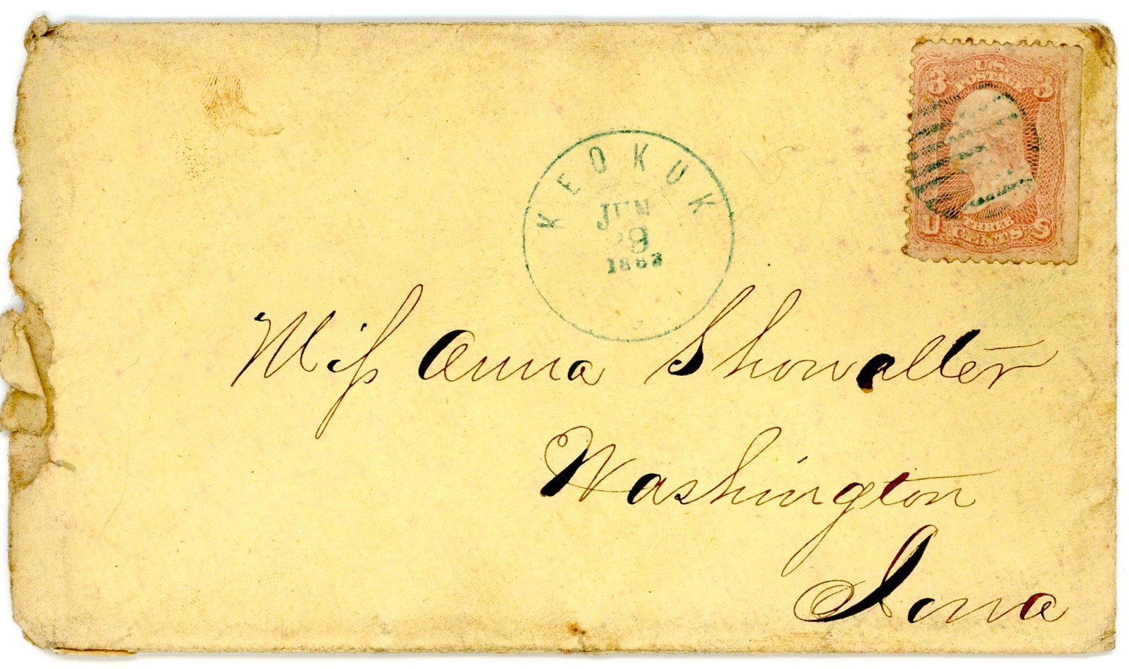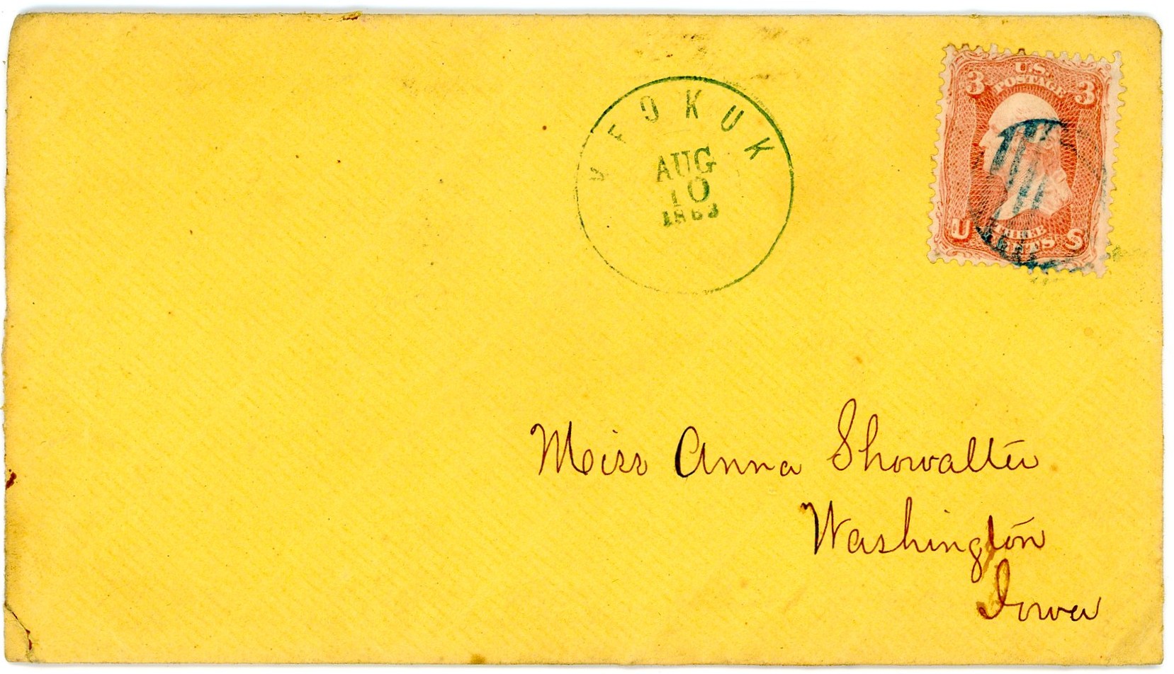 All of the letters were addressed to Roseanna Showalter (1839-1922), the daughter of Daniel and Catherine (McKaren) Showalter who moved from Wooster, Ohio, to Washington, Iowa, in 1844 when Roseanna was quite young. James and Roseanna were married in September 1864.