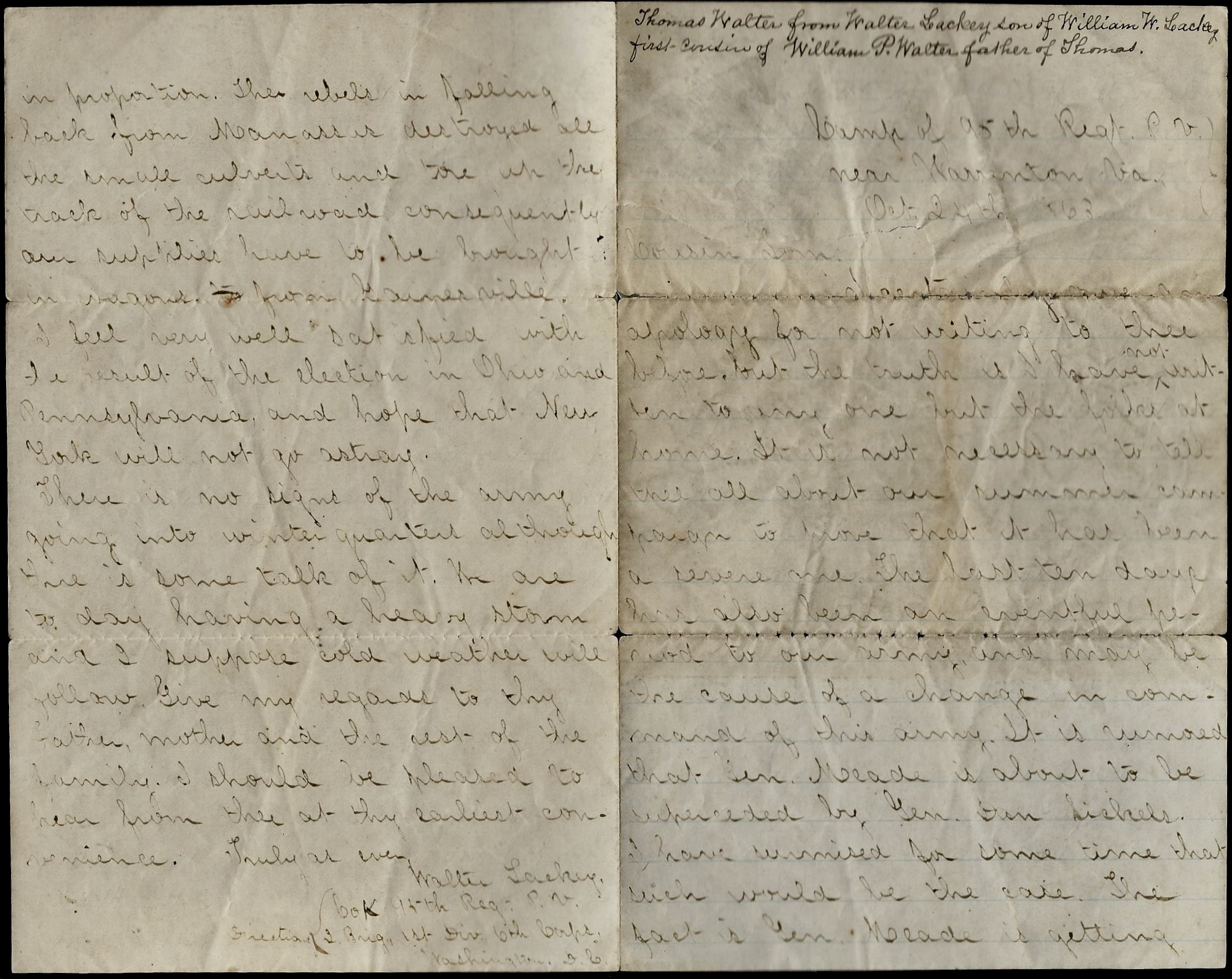 —Walter Lackey, Co. K, 95th Pennsylvania, 24 October 1863