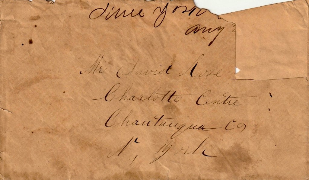 I’m inclined to be believe this letter was written by Egbert Jacob Bloomer (1823-1900), the son of Joshua Bloomer (1792-1835) and Betsy Scott (1797-1888) of Ovid, Seneca count, New York. Egbert was married in 1846 to Mary Vanpatten and they had a child named Ella Rebecca (1848-1905) when they were enumerated in Fairfield, Michigan, in 1850. He was remarried to Mary Vaughan (1839-1914) in Adrian, Michigan, in 1868 and with her he had two more children born in the 1870s. In the 1870 US Census, the couple were enumerated in Fairfield, Michigan, and 23 year-old Ellie (his daughter by first marriage) was living with them.