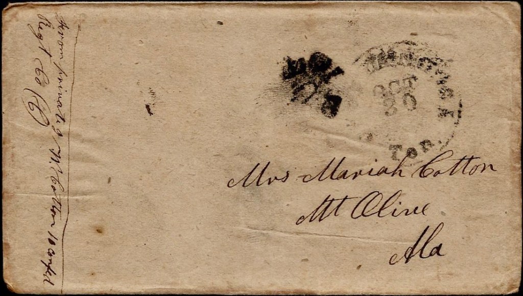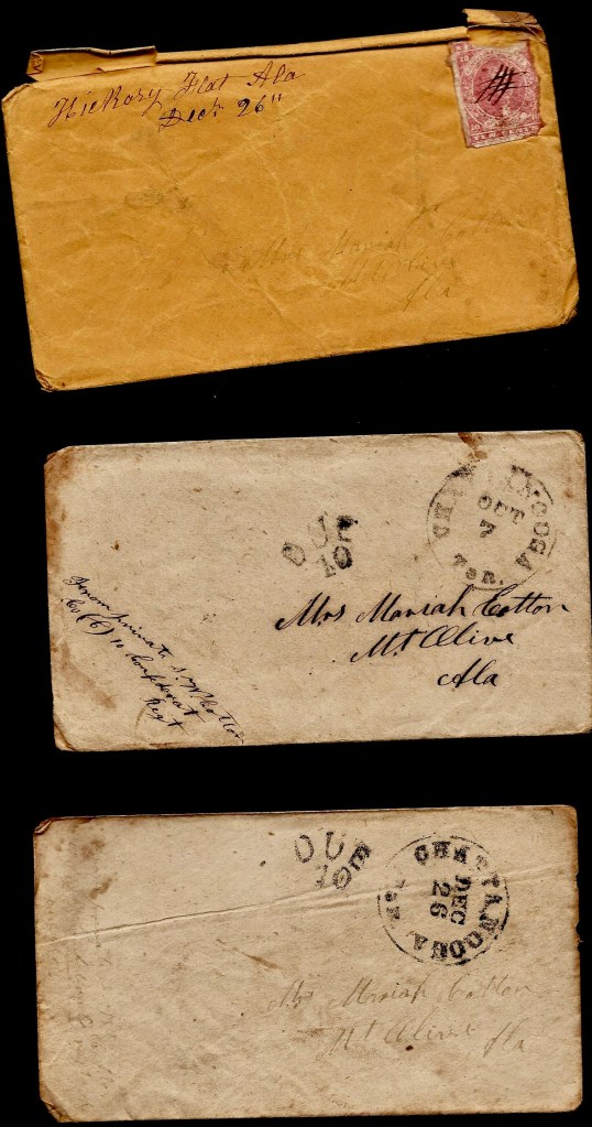 Mariah, I thought I would get to go by your Pap’s but I never got the chance, The nearest I got to there was at Greenville. It will take us two more days to go to Macon. I hant anything to write at present. I will write again in a few days if I have the chance. I hope these few lines may find you all well.