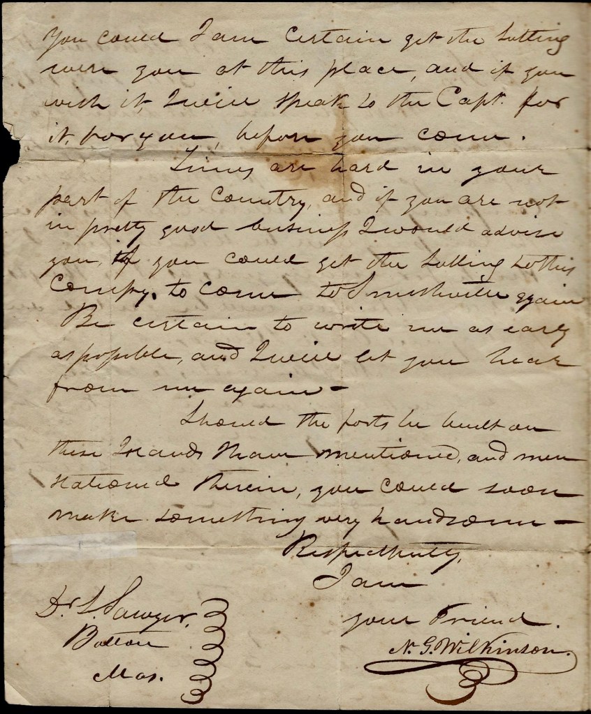 Nathaniel wrote the letter to Dr. Levi Sawyer (1785-1844) of Bolton, Worcester county, Massachusetts.