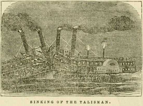 James Butler was the chief engineer on the Talisman. According to newspaper accounts, the Talisman was struck forward of the boilers and sunk within ten minutes. The Tempest was only slightly damaged and managed to come to the relief of the Talisman‘s crew and passengers. However, several of the crew and many of the deck passengers were drowned. Two or three families of German emigrants numbering about 25 persons were among the passengers. “The fate of Mr. Butler, the engineer, was particularly distressing. He was on watch and although he sasw at once and was told that the boat was sinking, he refused to leave his post until the water was up to his waist. It was then too late to save himself, and being unable to withstand the rush of water, he was borne back among the machinery and drowned.” His body was later recovered by the use of a diving bell.