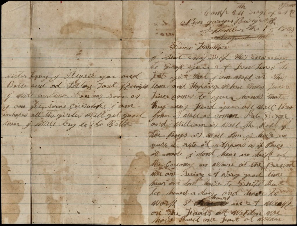Par, I have no news to write. It appears as if peace is made. I don’t hear no talk of the enemy no where at the present.
