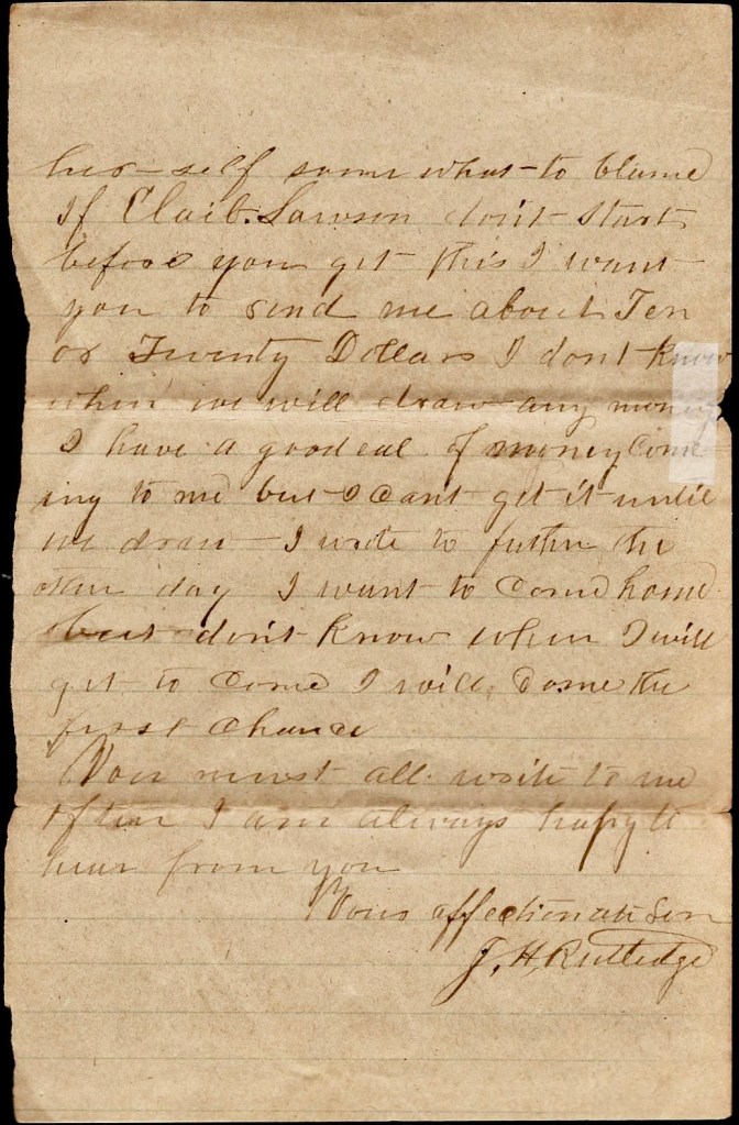 You must write to me soon. Truly your son, — J. H. Rutledge