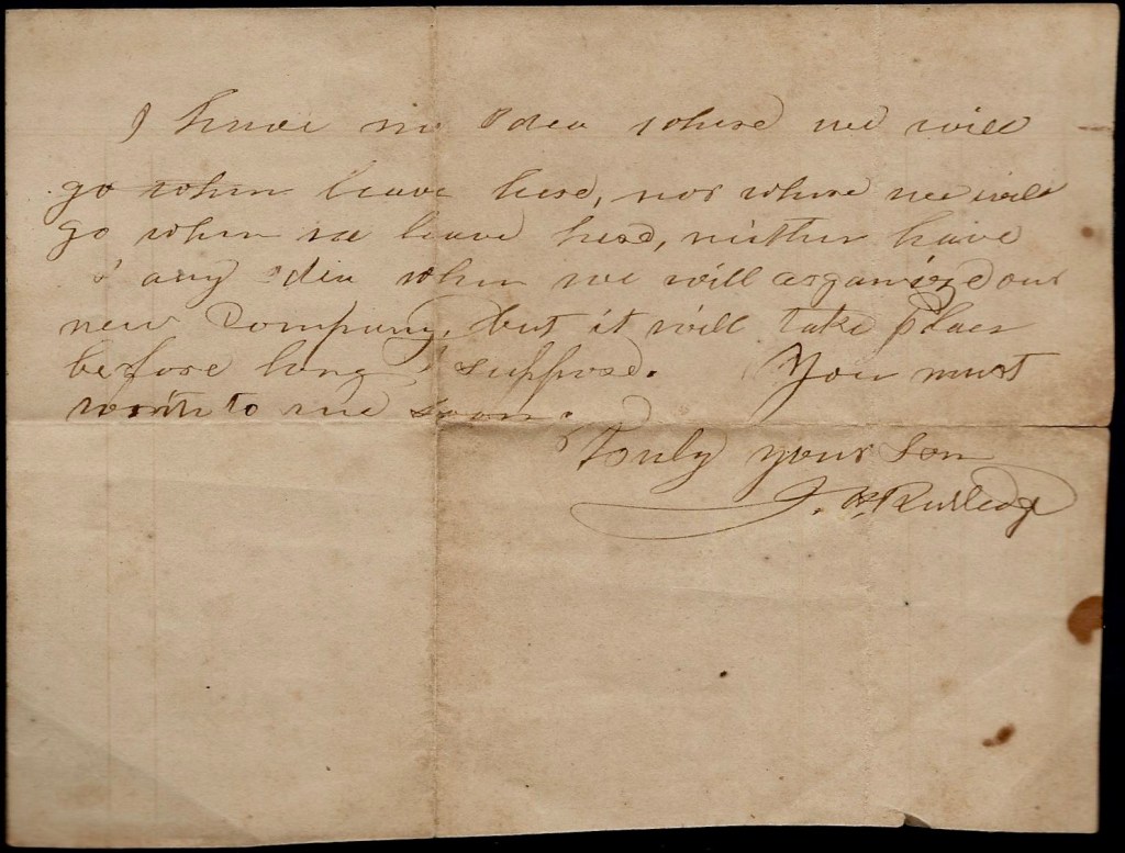 You must write soon and often. Your affectionate son, —J. H[enderson] Rutledge