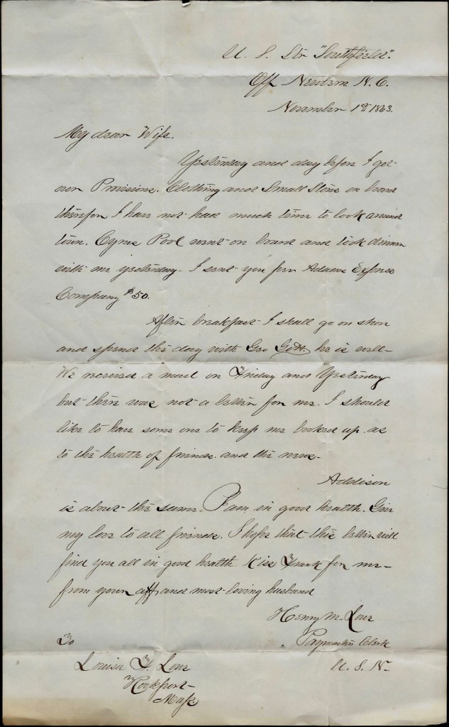 From your affectionate husband, — Henry M. Lowe, Paymaster Clerk, U. S. N.