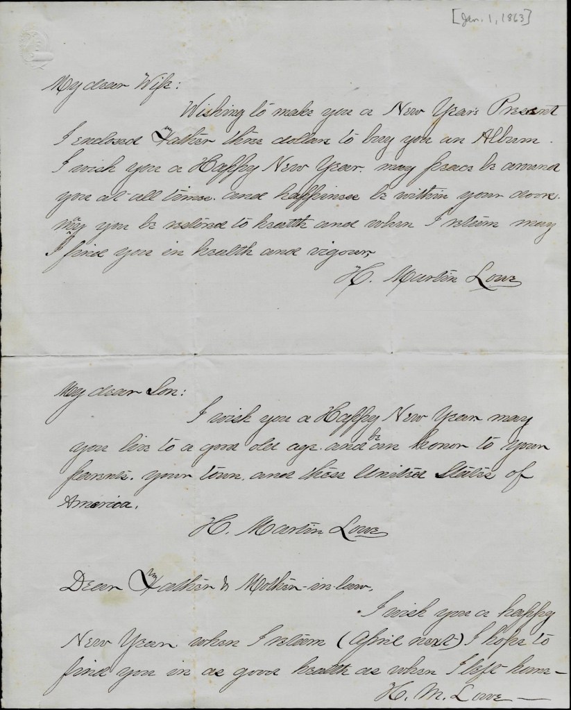 Give my love to all friends. From your most affectionate and loving husband, — H. Martin Lowe