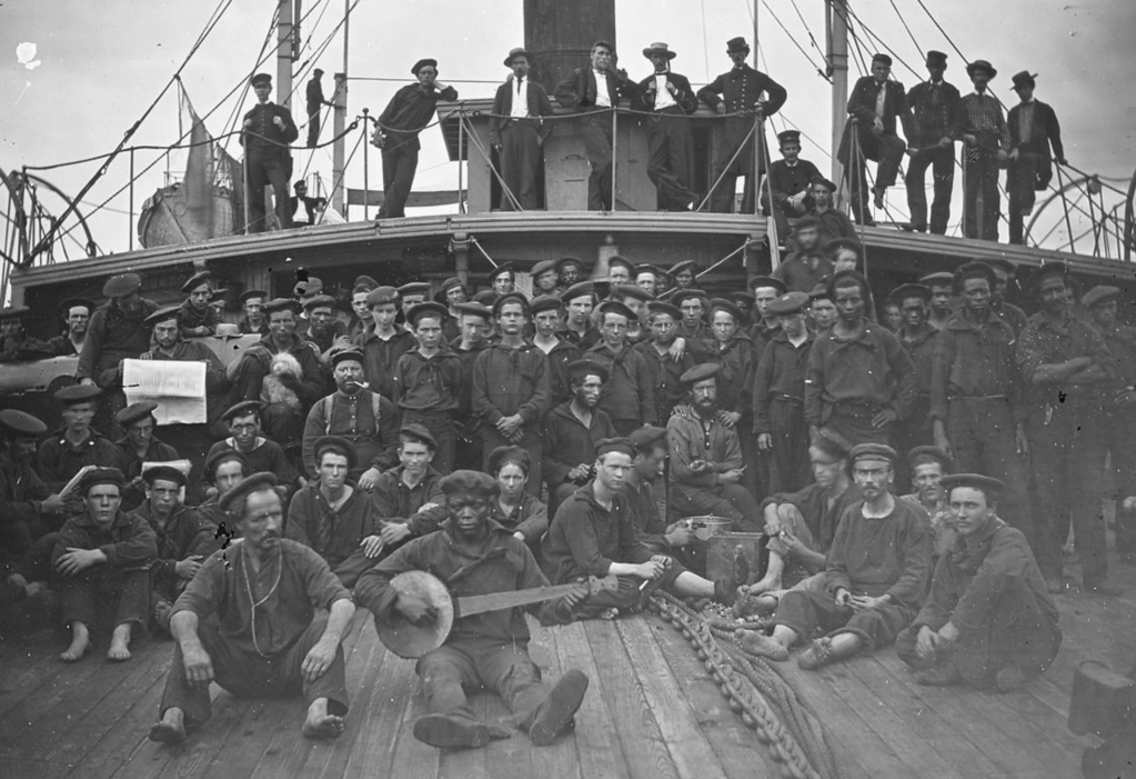 Night before last we had quite an exciting time on board of the vessel. Some of the crew got drunk and made some disturbance. We had a regular nigger riot. My darkey got rapped over the head once or twice with a belaying pin and he came on deck yelling. Another nigger got kicked about some and had his clothes hove overboard. They (our officers) proceeded to put some of the men in irons which some resisted in having on and they had quite a scrape with them for a few minutes. The officers armed themselves with revolvers and drove the men into the forecastle by pointing the pistols at the mens heads which they put the irons on. We have had three men in double irons ever since and feed them on bread and water. The most laughable part of it was that the doctor was pretty scared and bucked on his sword to defend himself with.