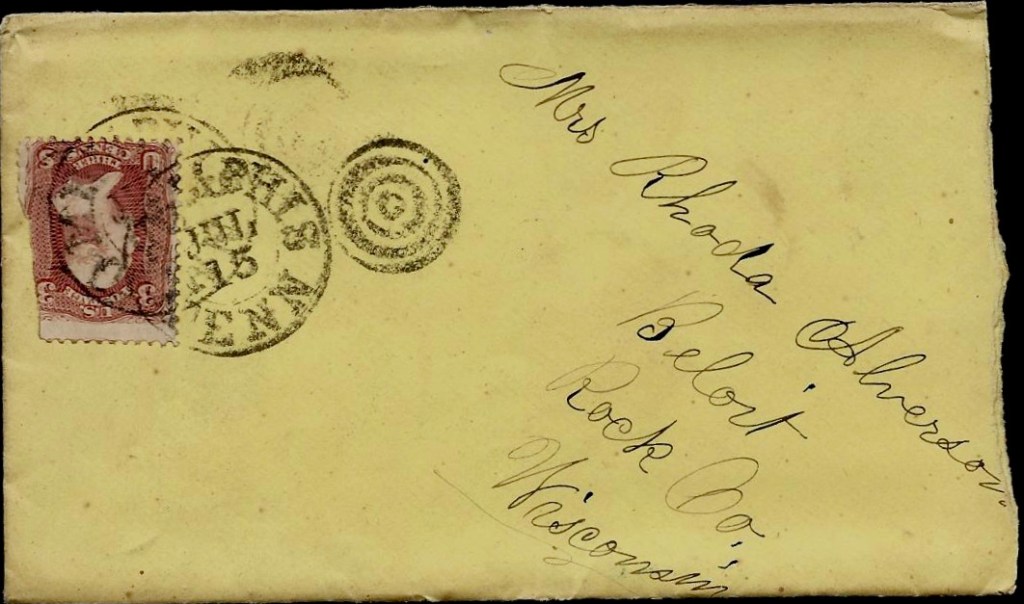 Addressed to Mrs. Rhoda Alverson, Beloit, Rock county, Wisconsin