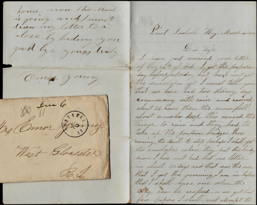 [Note: Many more (100+) of Emor Young’s letters are in the private collection of my friend Rob Grandchamp which were published in a limited number under the title, “Write Soon and Give me all the News.” Copies were distributed to libraries in Rhode Island. There are also a large number of Young’s letters (76 altogether) that are housed in the Filson Historical Society Archives in Louisville, Kentucky.]