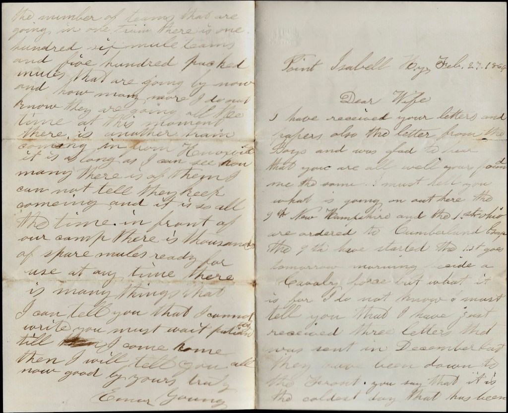 I must tell you what is going on out here. The 9th New Hampshire and the 1st Ohio are ordered to Cumberland Gap. The 9th have started. The 1st goes tomorrow morning beside a cavalry force but what it is form I do not know. I must tell you that I have just received three letters that was sent in December last. They have been down to the front.