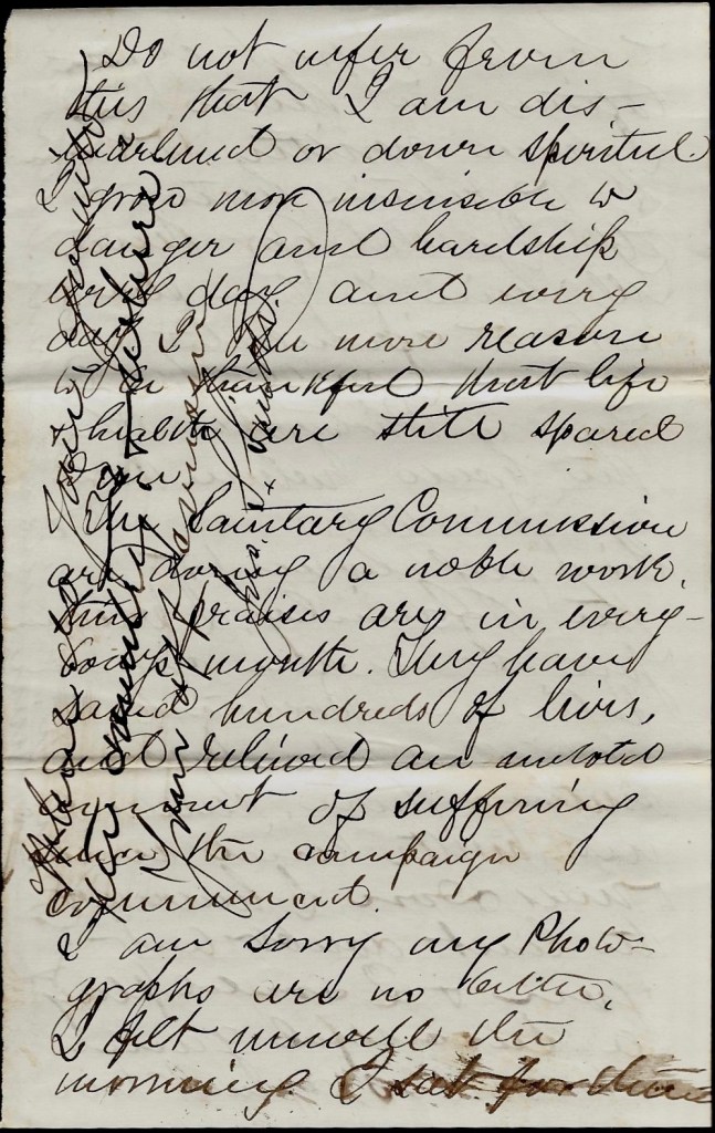 The Sanitary Commission are doing a noble work. Their praises are in everybody’s mouth. They have saved hundreds of lives and relieved an untold amount of suffering since the campaign commenced.