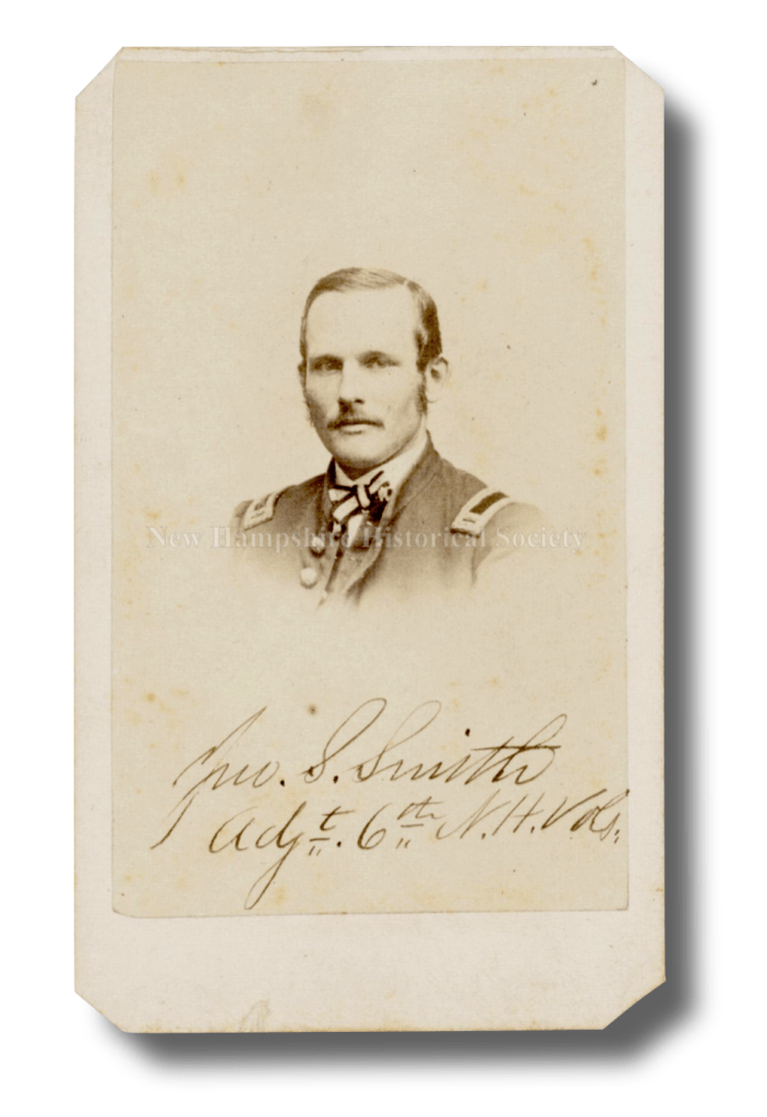 The following letter was written by John Stearns Smith (1837-1916) of Peterborough, New Hampshire who enlisted at the age of 23 on 4 October 1861 as a private in Co. E, 6th New Hampshire Infantry. He was wounded on 29 August 1862 at the battle of the 2nd Bull Run and again on 30 July 1864 (Battle of the Crater) at Petersburg. He was promoted up the ranks to 1st Sergeant by 1 July 1862 and commissioned a 2nd Lieutenant on 1 November 1862. He made 1st Lieutenant on 20 March 1863 and was also assigned duty as the regiment adjutant on Field & Staff at the same time.