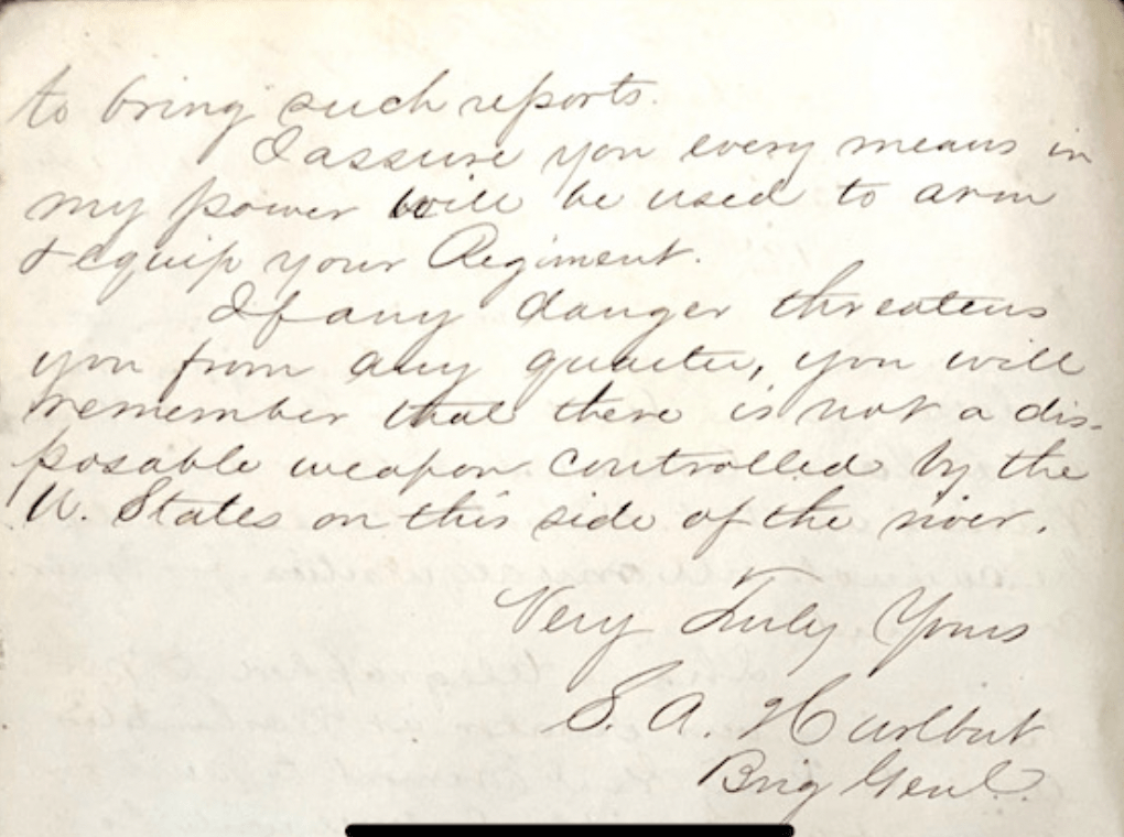 Very truly yours, — S. A. Hurlbut, Brig. General