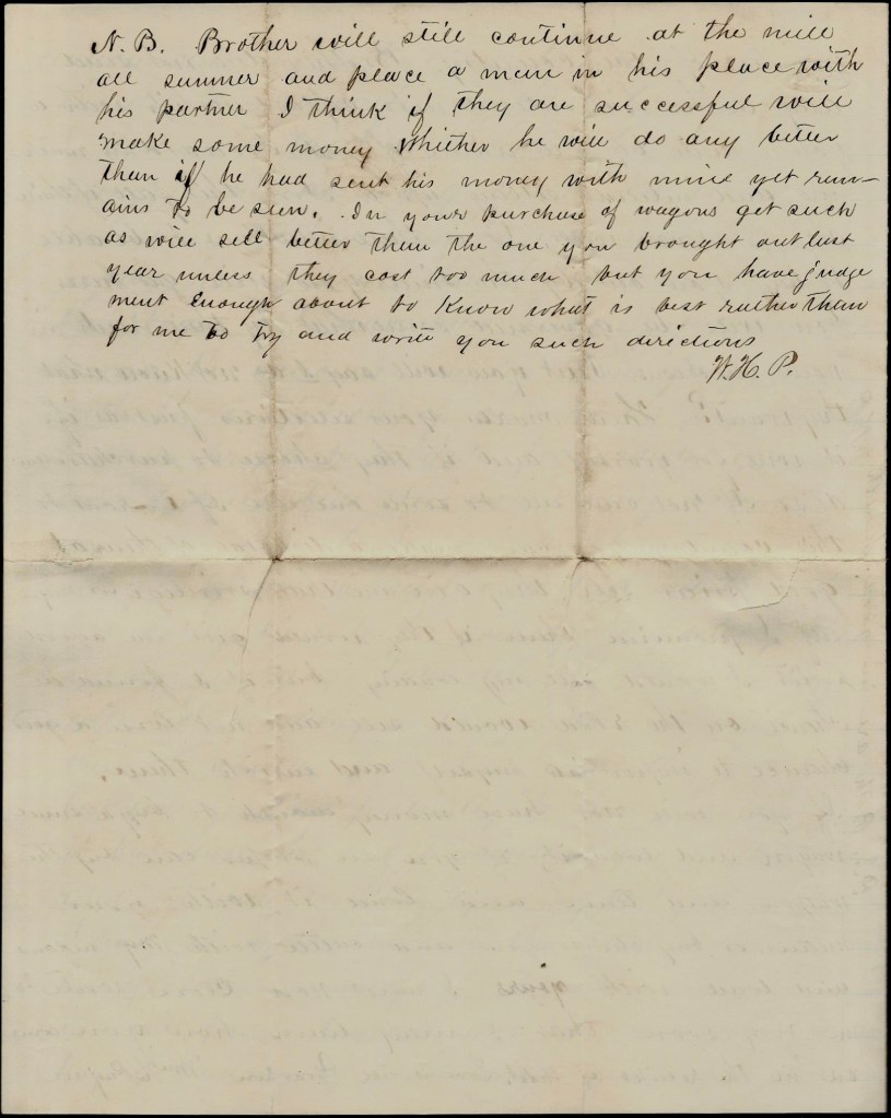 Button Jack is still here. 1 He is well. Has written two or three letters home since he come here. Brother did not come up this Sunday. I will send your letter to him Tuesday. I must now close. Direct me in relation to sending that….as soon as you can and I will try and let you know a week before hand when I send it. Receive my love and letter, I am your son, — Wm. H. P.