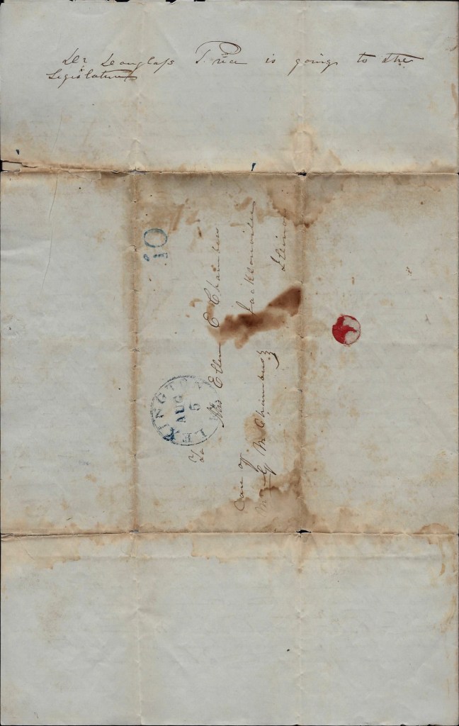 Martha wrote the letter to her much older sister, Eleanor Estill (Irwin) Chambers (1808-1888) and brother-in-law, George Maxwell Chambers (1800-1891). George moved with his parents from Maryland to Kentucky in 1805 and married Eleanor in 1820 in Fayette county. In 1835 they relocated to Jacksonville, Morgan county, Illinois, where he engaged in various business pursuits.