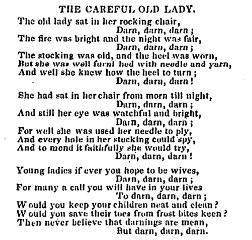 There is no news of consequence to communicate except that we have whitewashed the fence, broke one of the parlor looking-glasses, and killed the black cat for eating chickens. Tell Sister that I thank her very much for those tomato seeds and planted them immediately. I cannot express the very deep sense of gratitude that I felt on receiving that  very applicable piece of poetry relative to the gal that had a hole in her stocking. Now it is nothing very uncommon for folks to have rents in their hose, but it was certainly “shocking” on an occasion like that and I  would advise anyone placed in similar circumstances to adopt my plan of sewing them up.