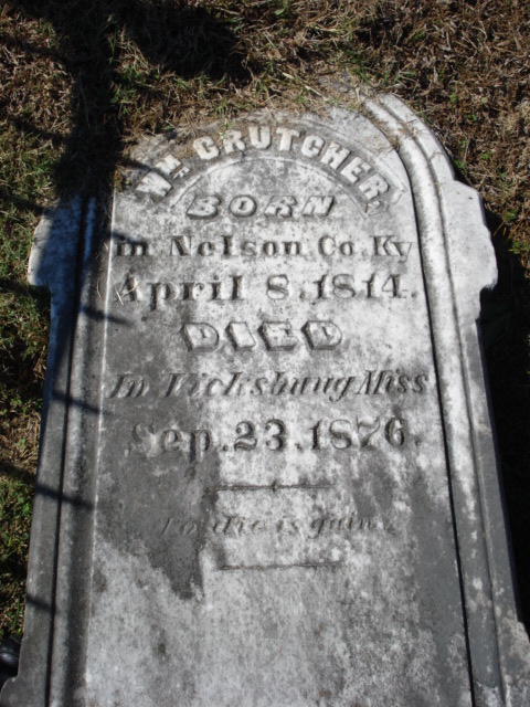 William lost one son early in the Confederate Service. George Charles Crutcher (1843-1861) died of disease at Manassas while a private in Co. A, 21st Mississippi Infantry.