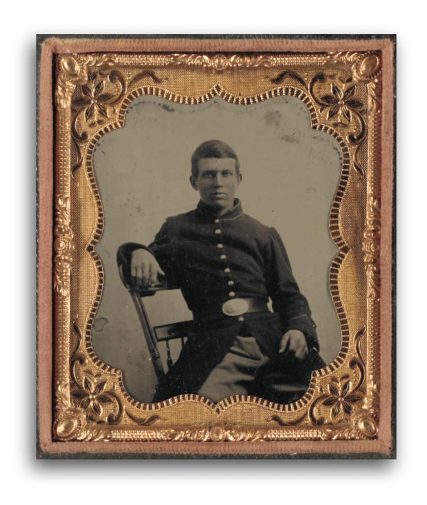 I now take my pen in hand in order to answer your kind letter which I just received. We are both enjoying good health at present and I hope that when this reaches you, it will find you the same. I enjoy a soldier’s life very well but I think I like home the best. You wanted to know how I or what I had to sleep on. You don’t think Uncle Sam would have his brave soldiers sleep on feathers, do you? No siree horsefly. We sleep on mahogany sofas and have pie and cake and sweet meats. But the best thing we get is pork and hard tack. We get coffee and sugar too.