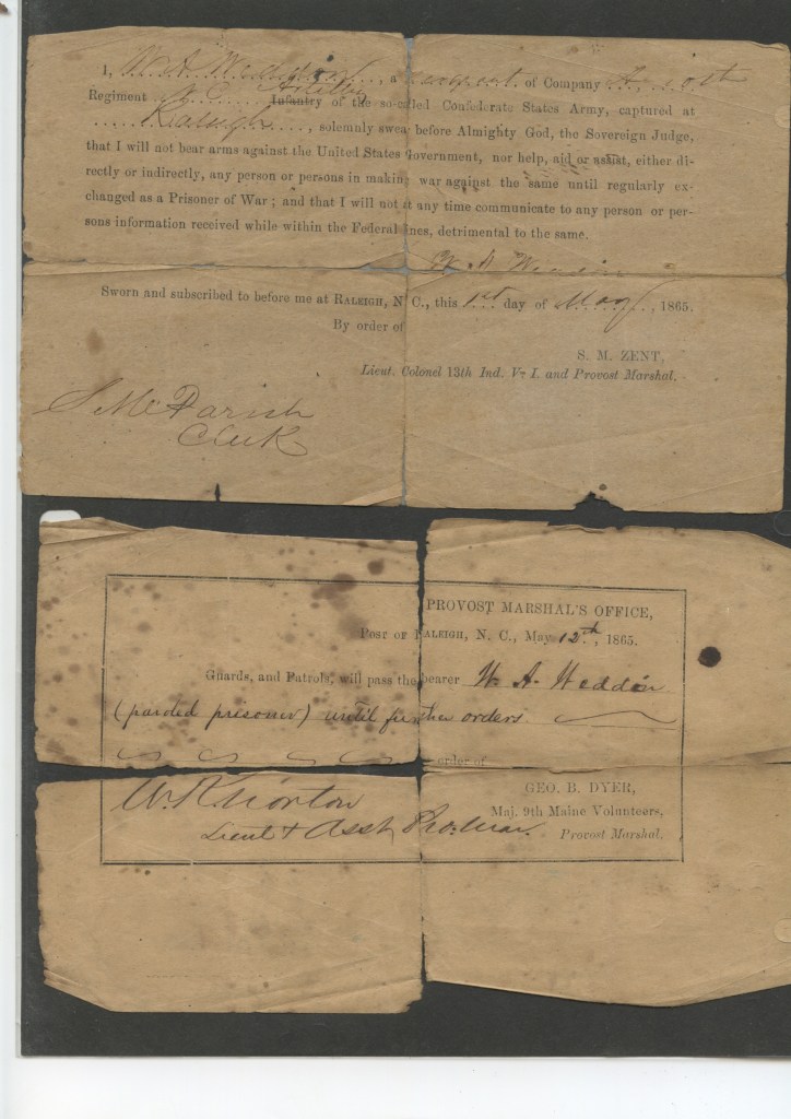 Gus was born in Wake county, North Carolina, where he resided as a professor and enlisted at age 21 on 8 May 1861. He mustered in as a farrier but was promoted to Corporal in 1862. He suffered a gunshot wound to the arm on 9 June 1864 but returned to duty in mid-September and was present and accounted for through December 1864. After the war he married Kate Levy (1846-1908) of Raleigh and became one of the proprietors of the Weddin & Bailey Stage Line to Asheville. When that business was replaced by the railroads, Weddin ran the Eagle Hotel and then became superintendent of the Greystone Quarry.