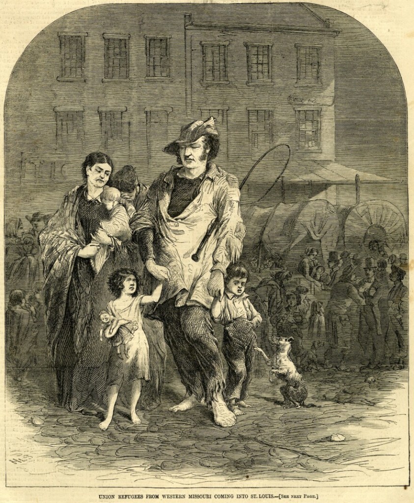 General Halleck has been “tightening up” on the wealthy secessionists here in St. Louis within the last few days. He is obliging them to “contribute” pretty freely towards the support and comfort of the numerous loyal refugees from the southwestern part of the state. Many of these refugees arrive here in a pitiable condition. Some with horses and mules & some with oxen hitched to wagons containing their families & a few articles hastily thrown in at the time of flight. On cold, windy days, I have seen the women and larger girls of a company, very thinly & scantily clad, following the wagons on horse back, when it would seem as though they must freeze. Parties of them frequently stop in the street in front of our office which is close to headquarters where they have to get papers to go over the river into Illinois. I sometimes go down & talk with them & hear their stories of narrow escapes & how they have left their farms, houses, everything that they could not seize, hastily thrown into a wagon. Some of them come from as far as the borders of Arkansas.