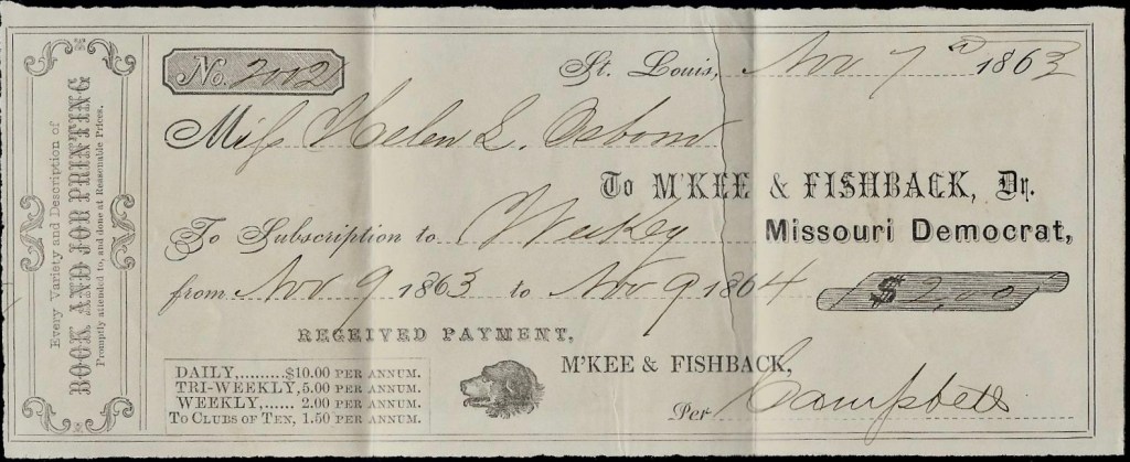 Capt. [Thomas J.] Carlin’s Battery is at Rolla. Six of his company came down on the cars the other day with some of the poorest horses & took back some fresh ones. One of the boys was in at the “Virginia” [Hotel] one morning & I accidentally found out who he was. In the evening I went to the place where they were quartered and had quite a chat. They reported that Amos 1 was sick or quite unwell but would not give up & go to the hospital. I sent him a letter and cheered, &c. &c.