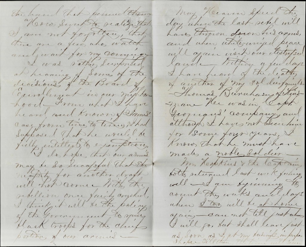 I do hope that our armies may be so successful that the necessity for another draft will not come. With the rebellion once fairly crushed, I think it will be the policy of the Grovernment to raise black troops for the chief portion of our armies.