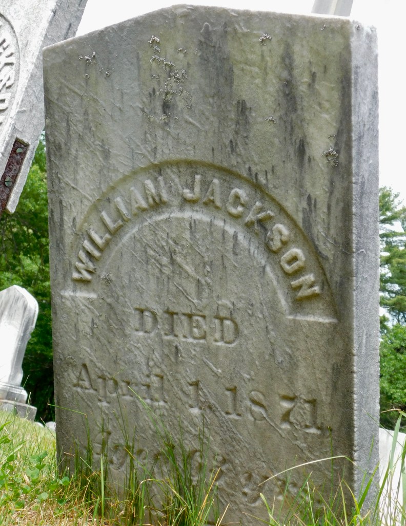 William Jackson (1808-1871) was a ship builder in Kittery. He was married to Mary C. Young (1820-1886). He died on 1 April 1871 and was buried in the Orchard Grove Cemetery in Kittery.