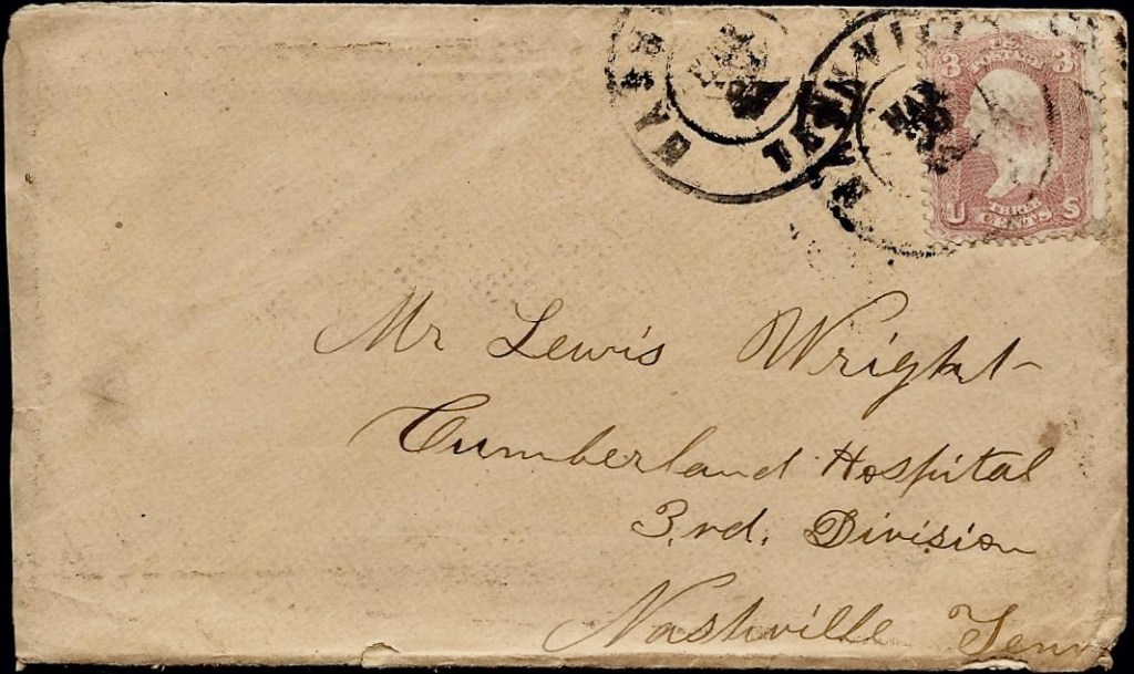 Addressed to Mr. Lewis Wright, Cumberland Hospital, 3rd Division, Nashville, Tennessee